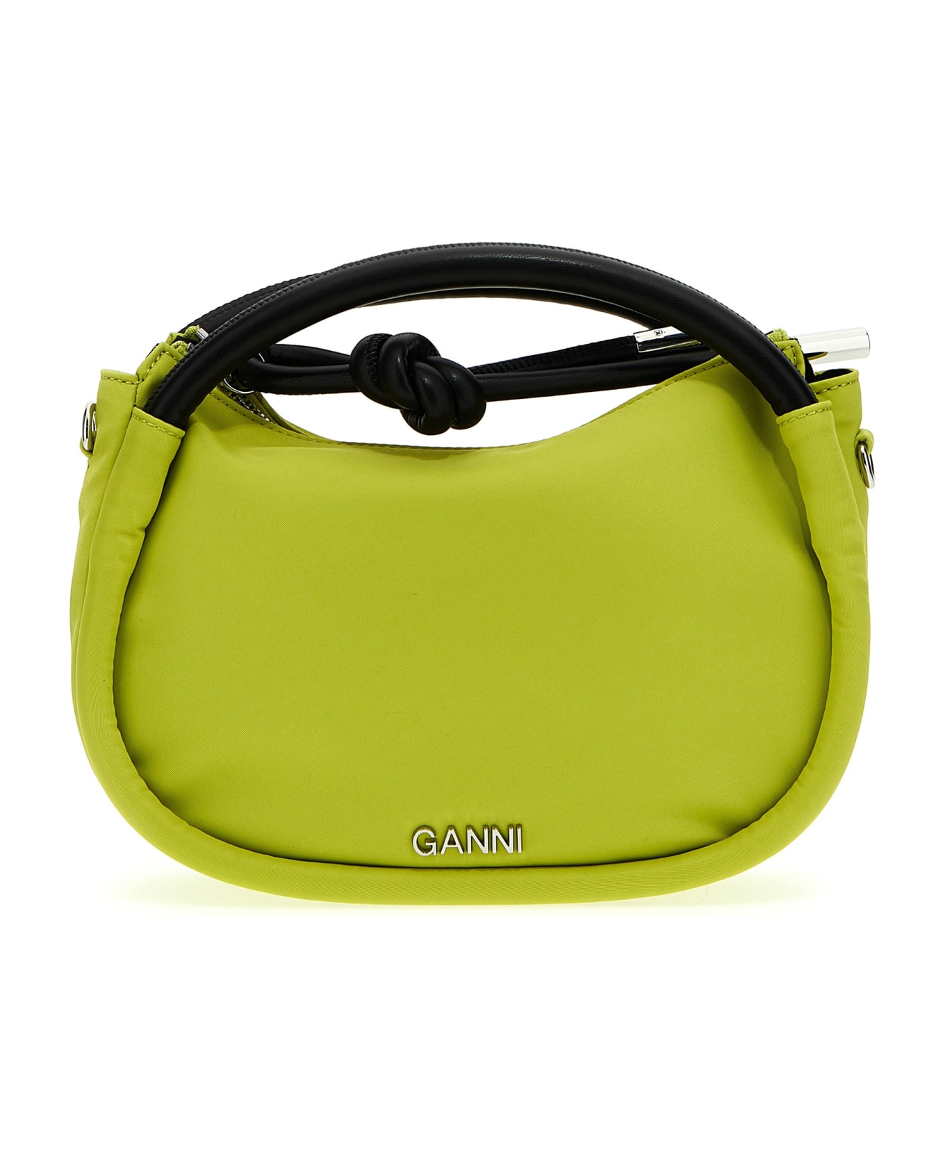 Knot mini bag handbag in technical fabric with front metal logo, and flap closure with button. Featuring a removable shoulder strap