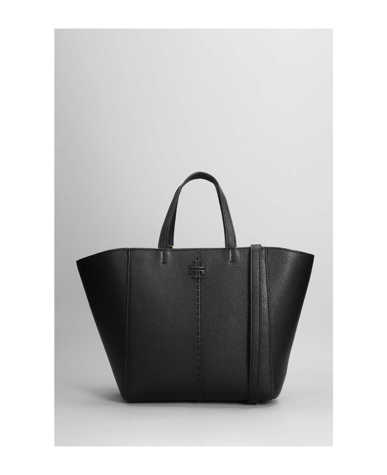 McGraw Tote in black leather, Height 240 mm, double handle, shoulder strap, relief logo, 100% leather, Made in Philippines, Width 395 mm