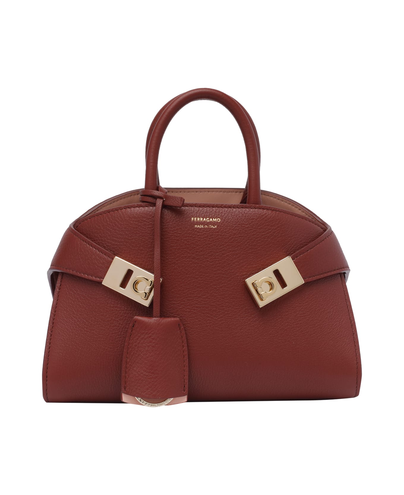 Ferragamo bordeaux mini Hug handbag, 2 inner slots, 2 handles, removable and adaptable strap, frontal logo