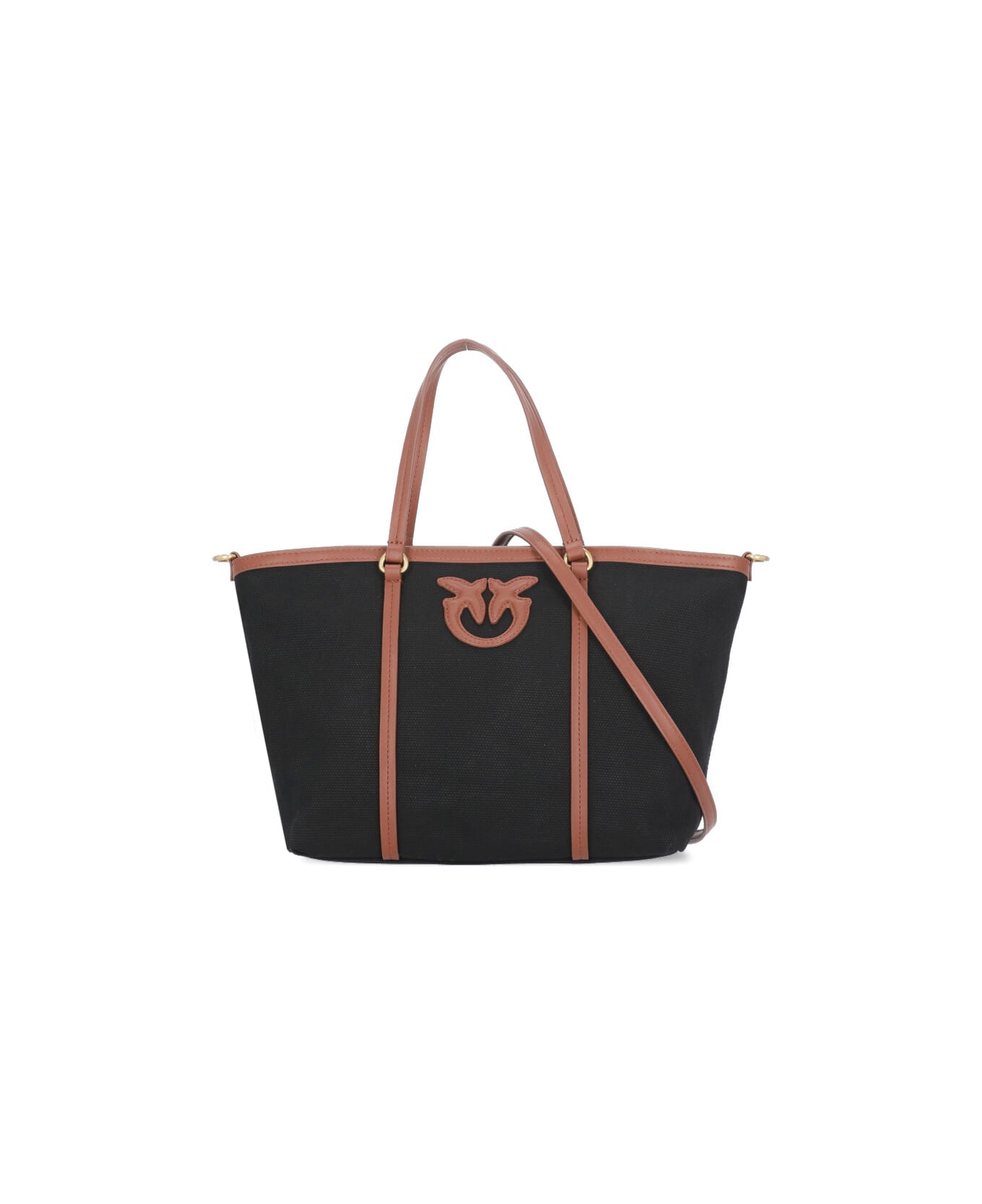 - Black Pinko cotton bag for woman - Two handles - One removable shoulder strap - Front contrasting color logo - One internal zip pocket