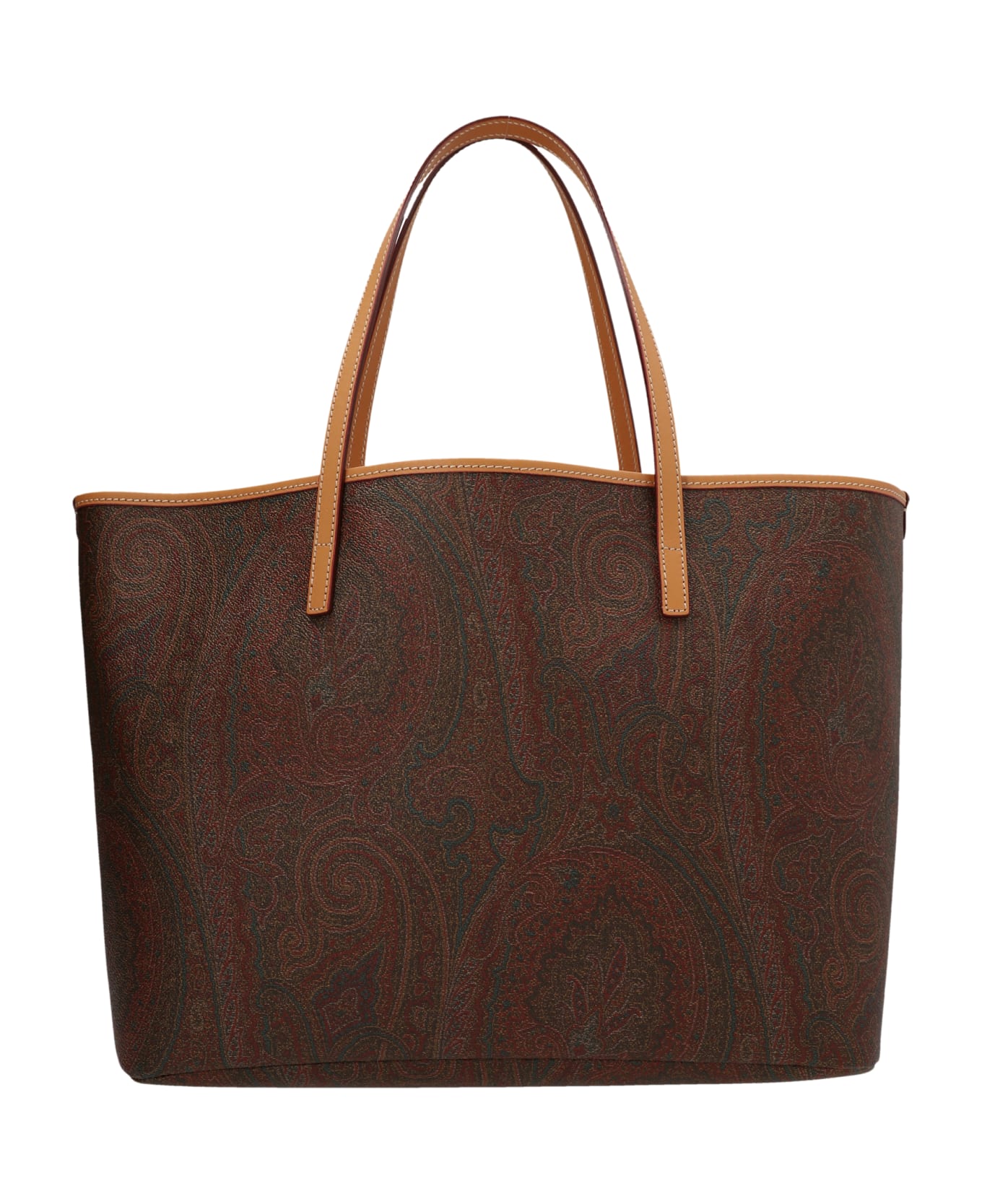 Midi shopping bag made in the iconic all-over 'Paisley' fabric, featuring double matte grain, a zip pocket, a snap hook closure, metal accessories with a gold finish, and logo fabric lining. Composition: 76% cotton 24% polyester
