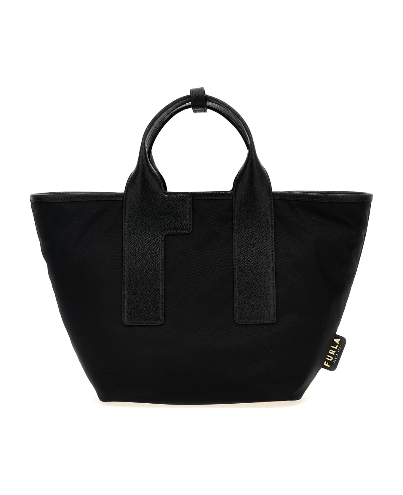 Piuma M nylon shopping bag with leather details, double handle, zip closure. Composition: 60% polyamide 40% calf leather