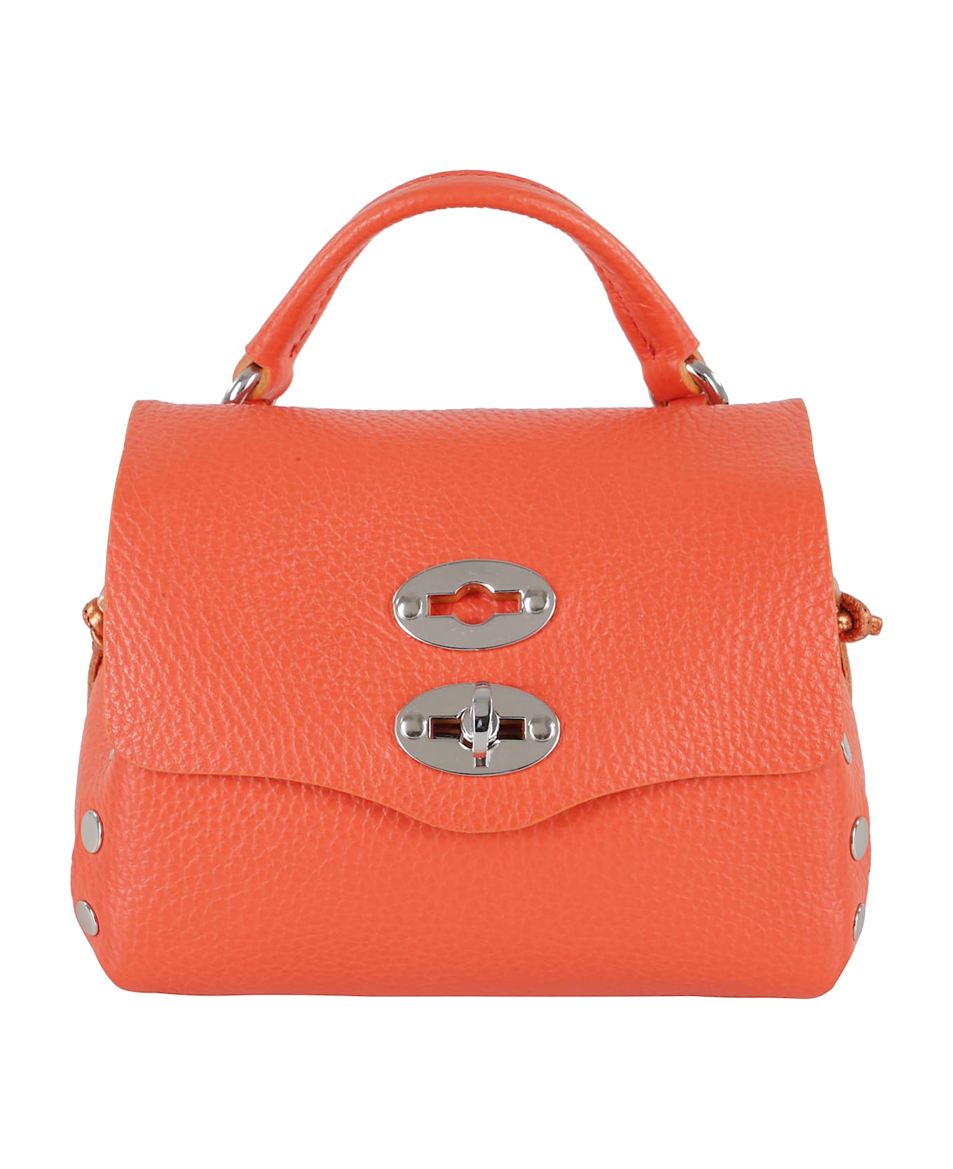 Daily Night Postina bag - Zanellato - Orange color - Made of grained leather - Studded side applications - Top handle - Contrasting adjustable shoulder strap - Front flap closure with double swivel - Dimensions: 12 x 15 x 9 cm.