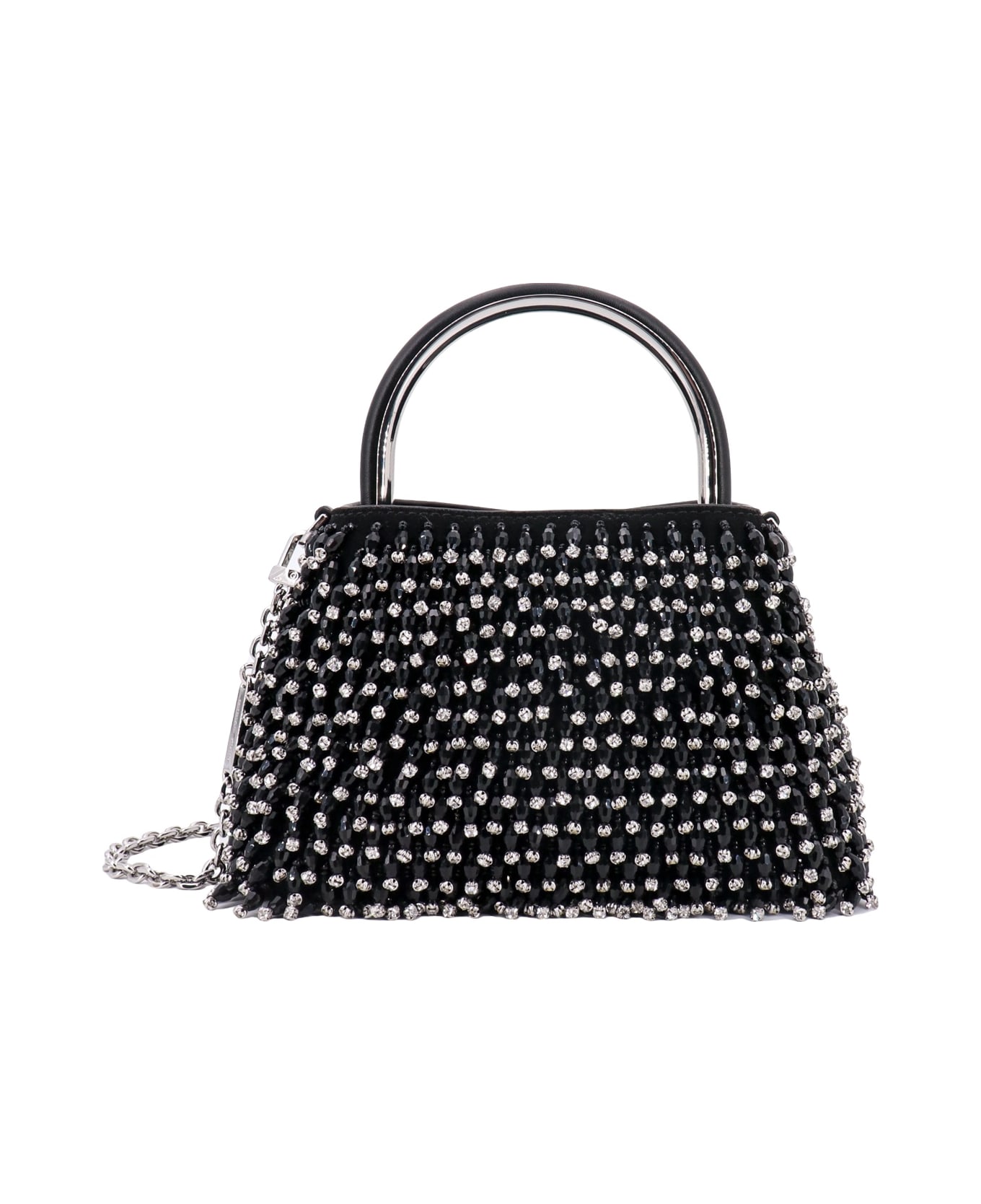 Suede handbag with all-over rhinestones