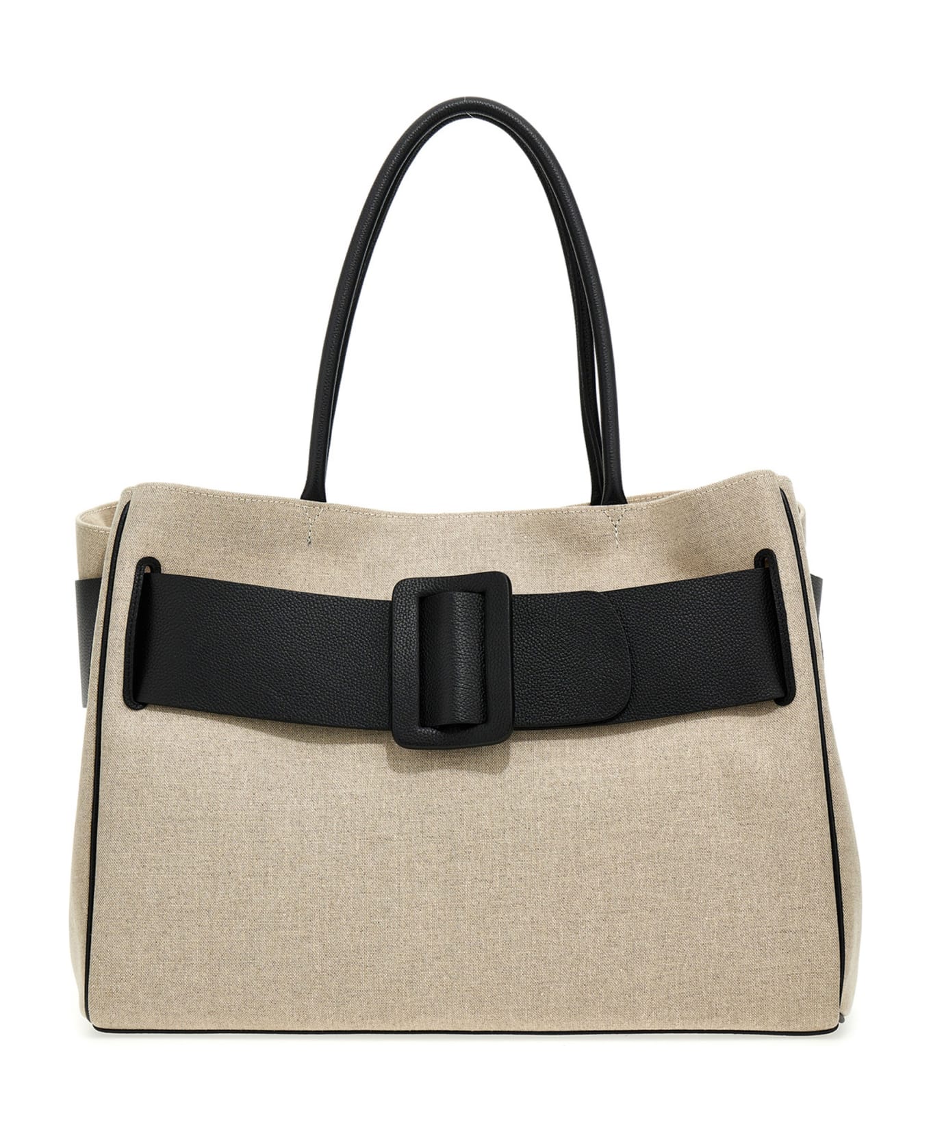 Bobby Co Soft' canvas shopping bag with cotton lining, oversize leather buckle detail and leather belt, double leather handle, zip closure, inner zip pocket and pocket pocket.