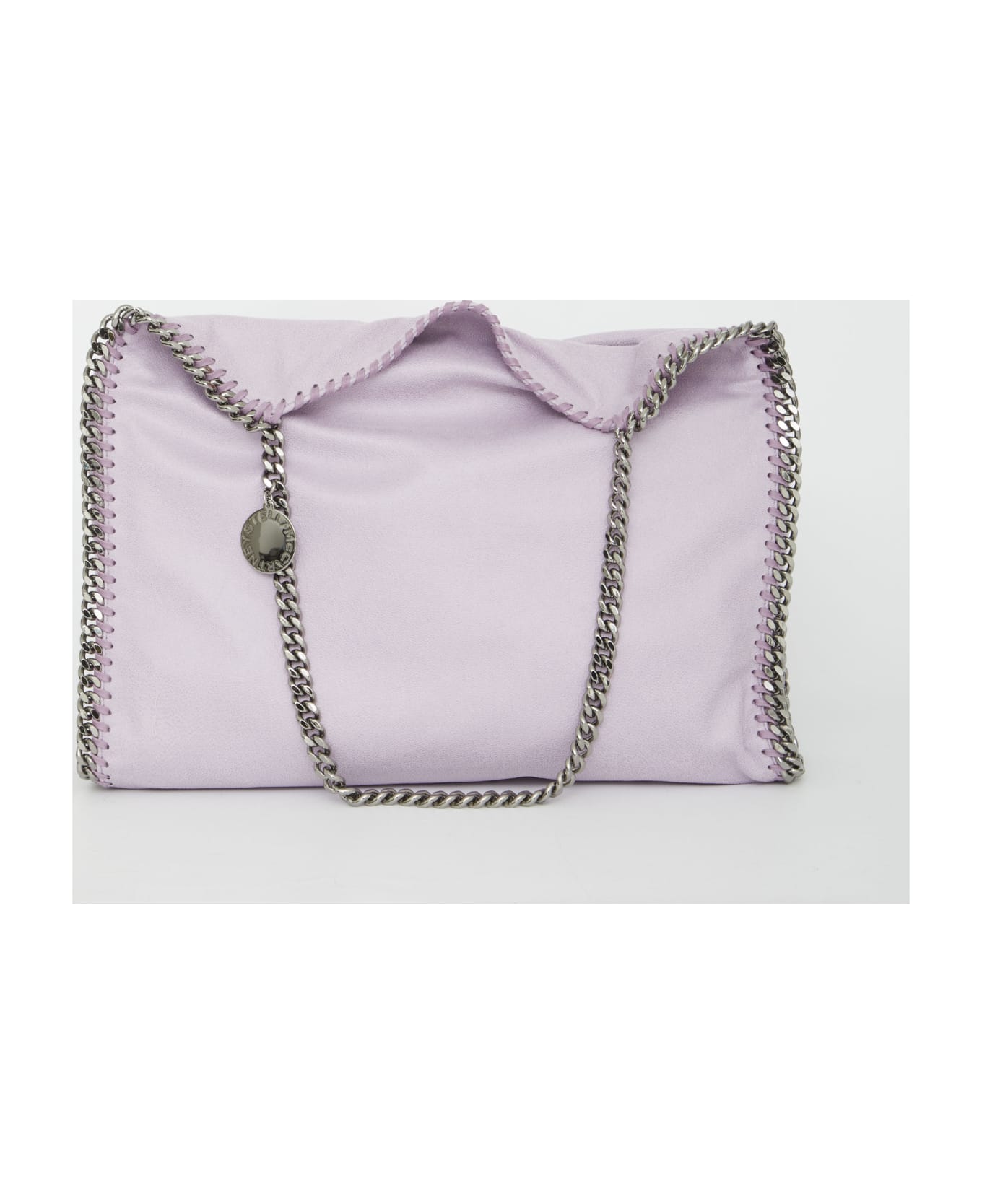 Small Tote Eco bag in lilac Shaggy Deer vegan fabric with silver diamond-cut chain. It features top double handles, snap-button closure, one main interior compartment and one interior zip pocket.