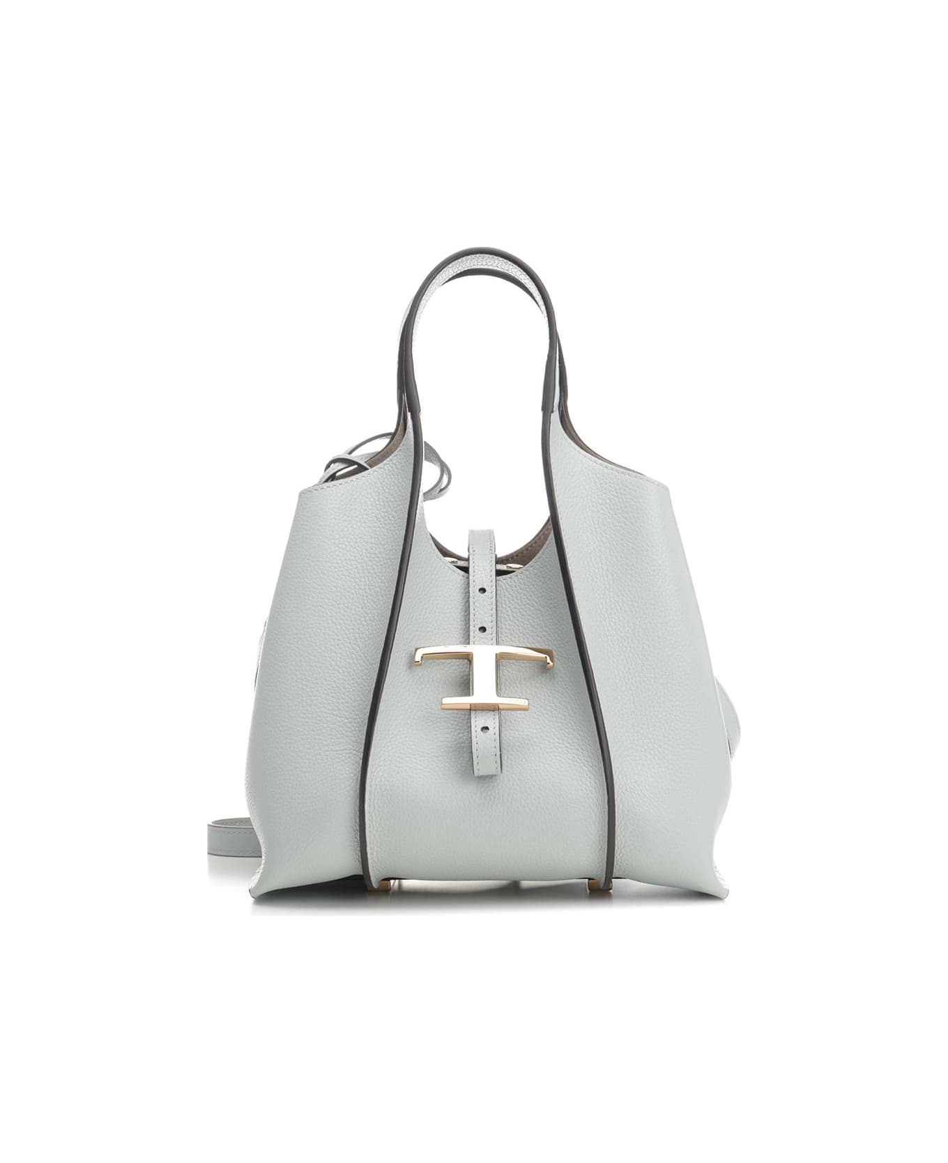 "T Timeless" mini calfskin shopping bag by Tod'S. Metal pendant accessory. Two handles and a removable shoulder strap. Removable maxi inner pouch. Closure with strap and snap button. Metal feet.