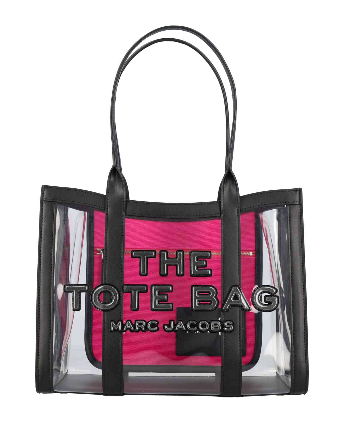 The Clear Medium Tote Bag By Marc Jacobs. Featuring: Transparent Pvc Leather Details Top Handles 3d Logo At Front Logo Patch At Back Interior Zip Pocket Studded Metal Feet Height: 26 Cm Width: 33 Cm Depth: 15 Cm