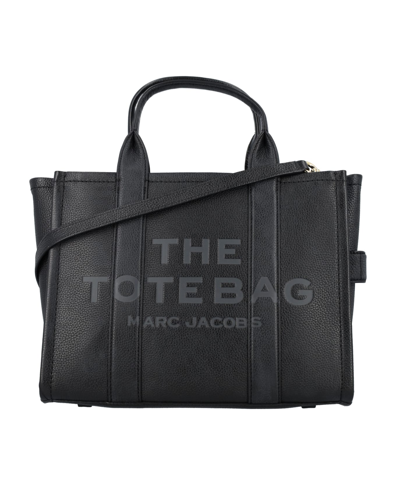 The Leather Medium Tote Bag By Marc Jacobs. Featuring: Top Handles Zip Closure Removable And Adjustable Leather Strap Logo Print At Front Logo Patch At Back 2 Interior Zip Pocket And 2 Slip Pockets Width: 34 Cm Height: 27 Cm Depth: 15 Cm