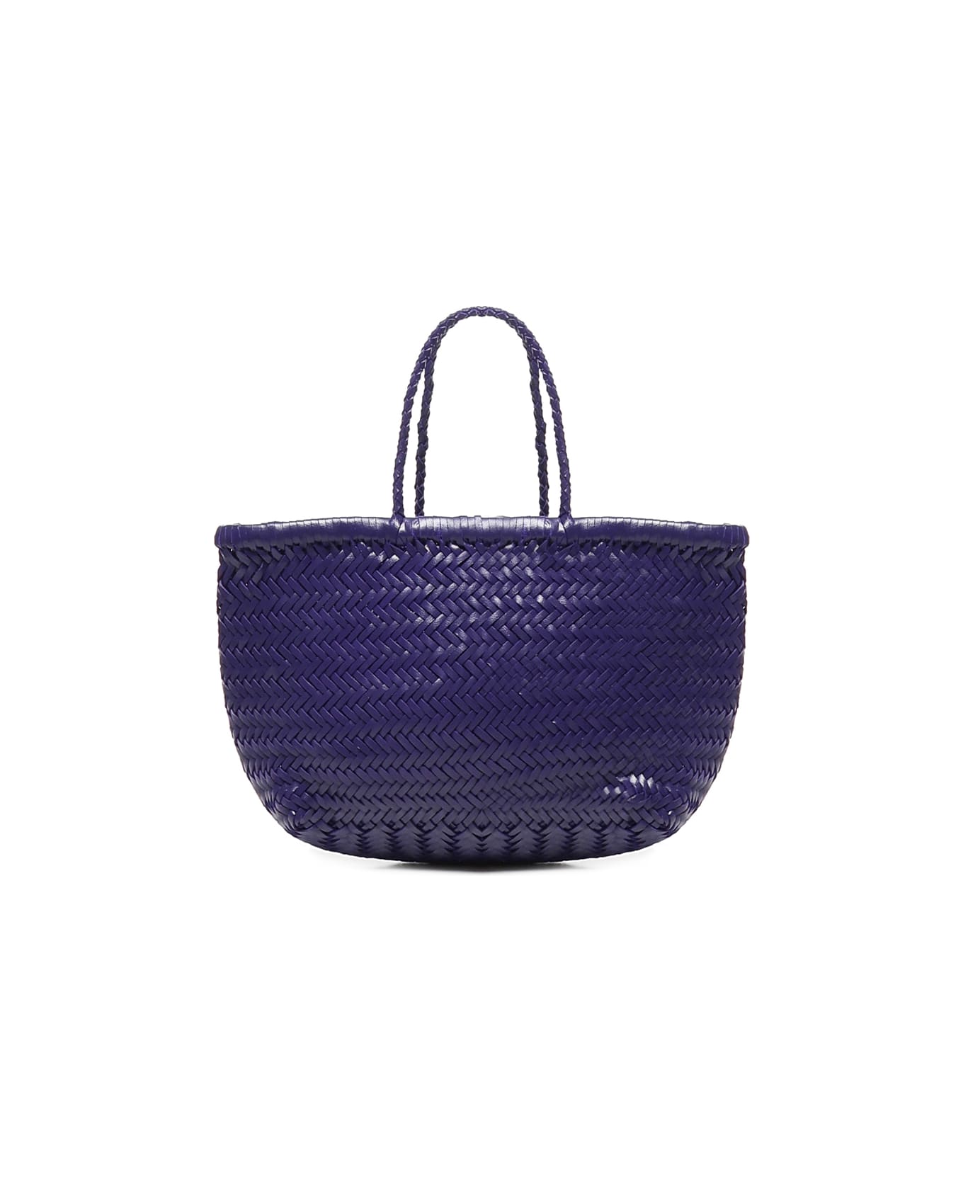 - Made of buffalo leather - Two woven leather handles - No closure - Unlined - Dimensions: 30 x 17 x 10 cm - Color: Purple