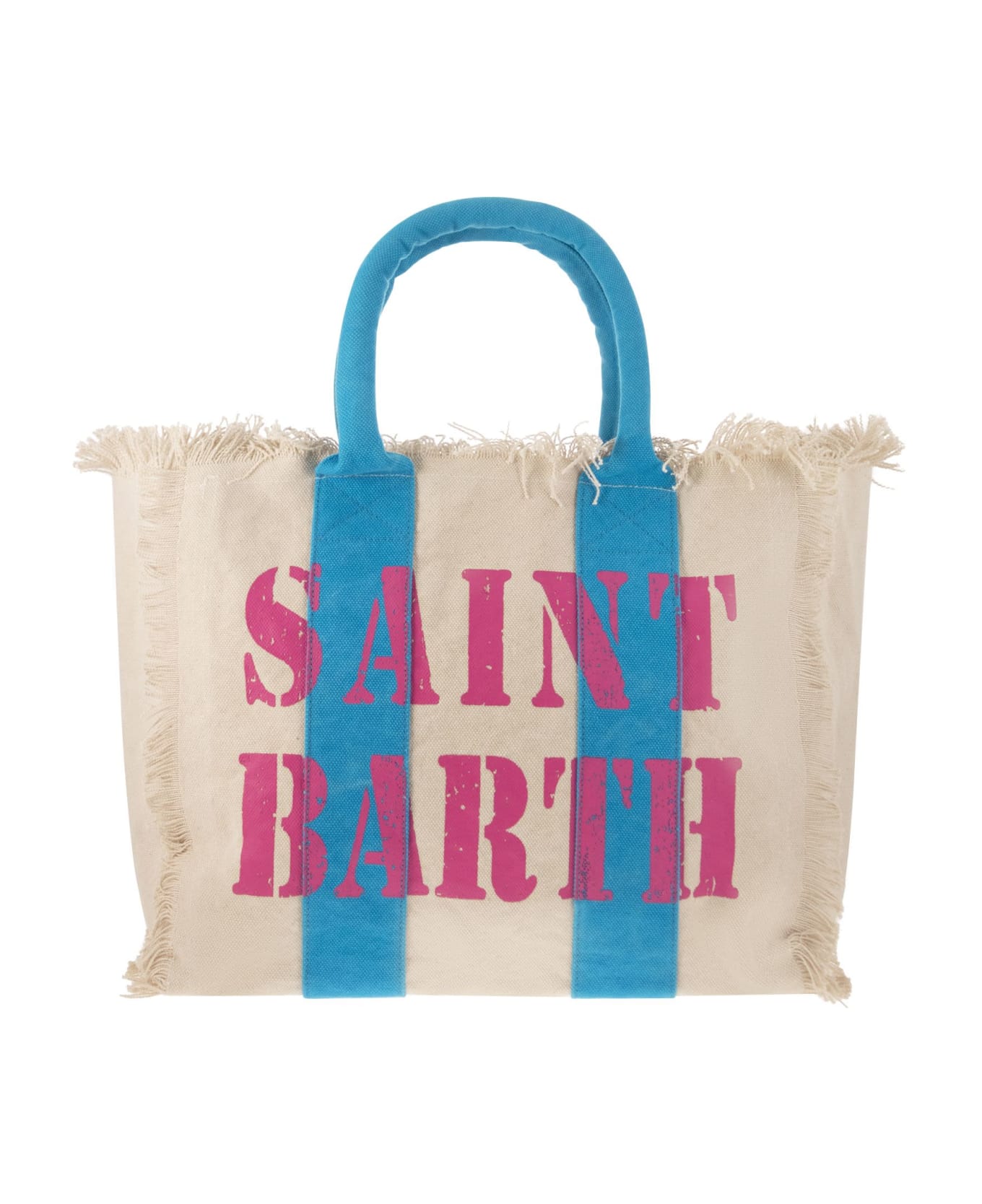 Vanity shoulder bag in cotton, with fringes along the edges and embellished with the logo on the front. Comfortable canvas handles finish off this bag with contrasting colour stripes. Ideal to carry with you at all times. - One zipped inside pocket - Zip closure - Front logo DESIGNER ID: VANI009 05269D Composition: 100% Cotton