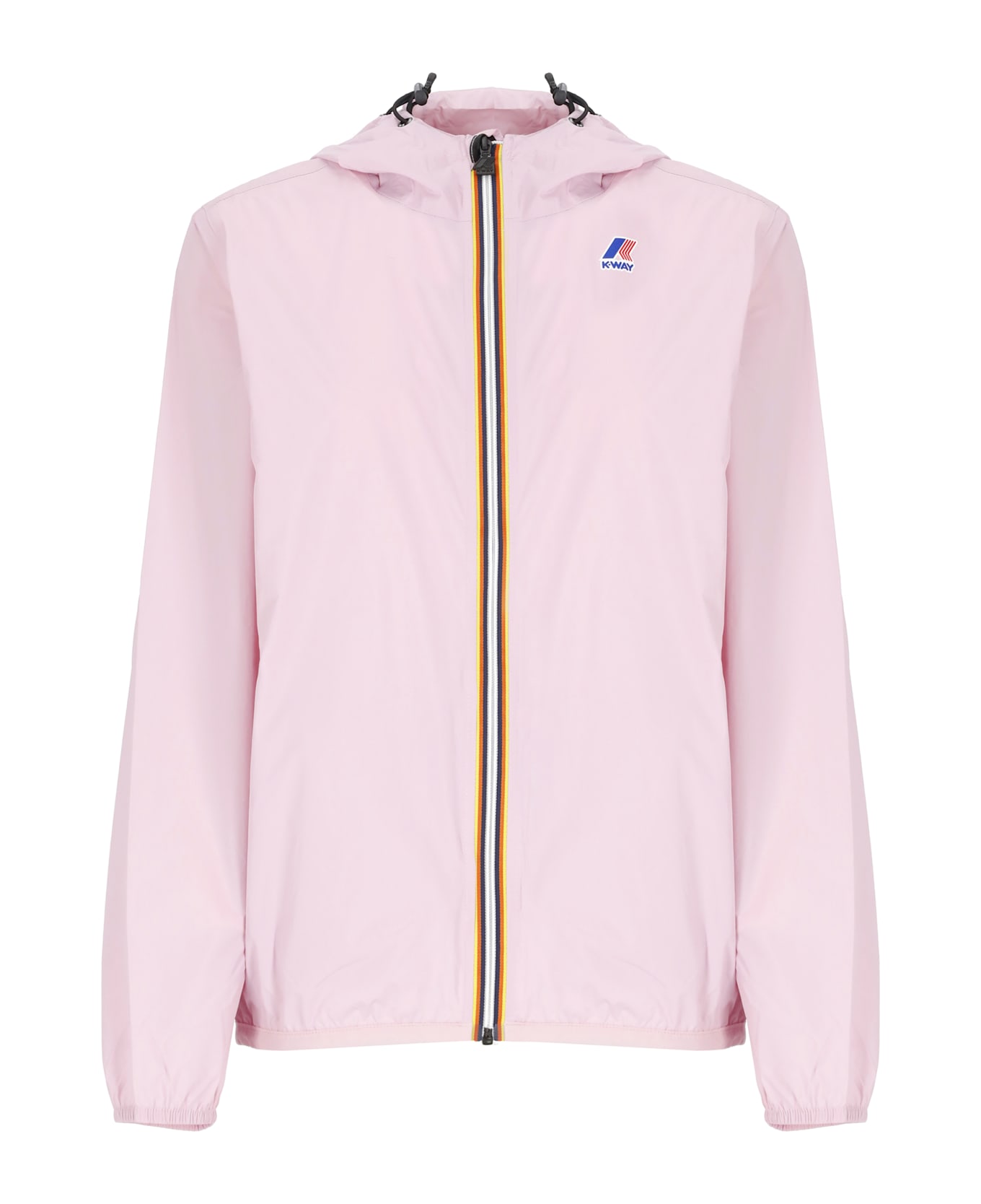 - Pink K-Way waterproof fabric jacket for woman - Hood - Front zip fastening - Long sleeves - Two front zip pockets - Front contrasting color logo