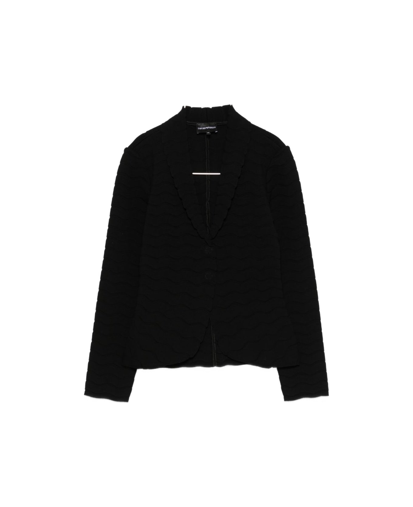 black textured finish button closure long sleeves notched lapels fitted silhouette Composition: 11% Polyamide, 55% Viscose, 34% Polyester