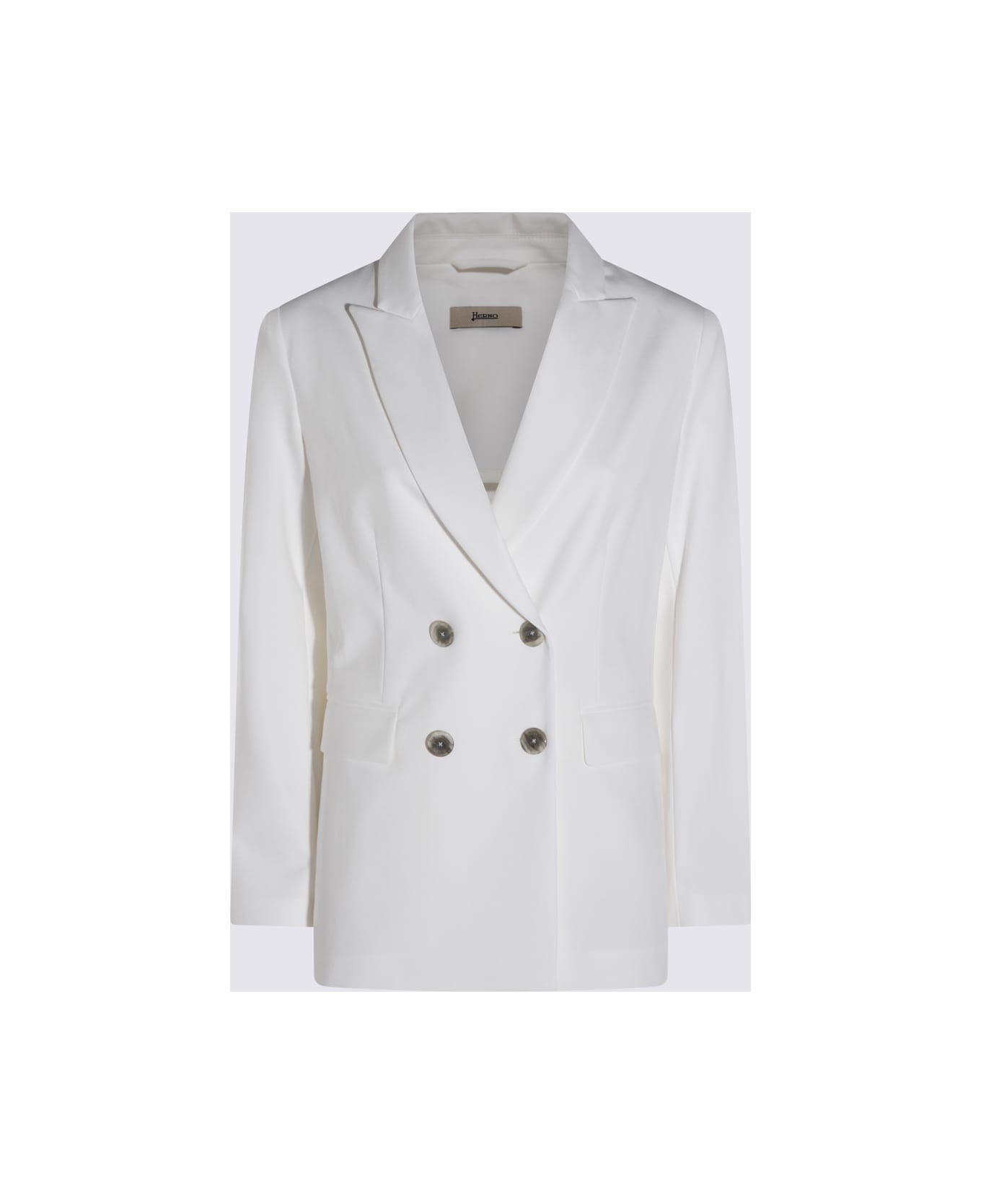 White cotton blazer from Herno featuring long sleeves, double breasted fastening with buttons and regular vestibility.