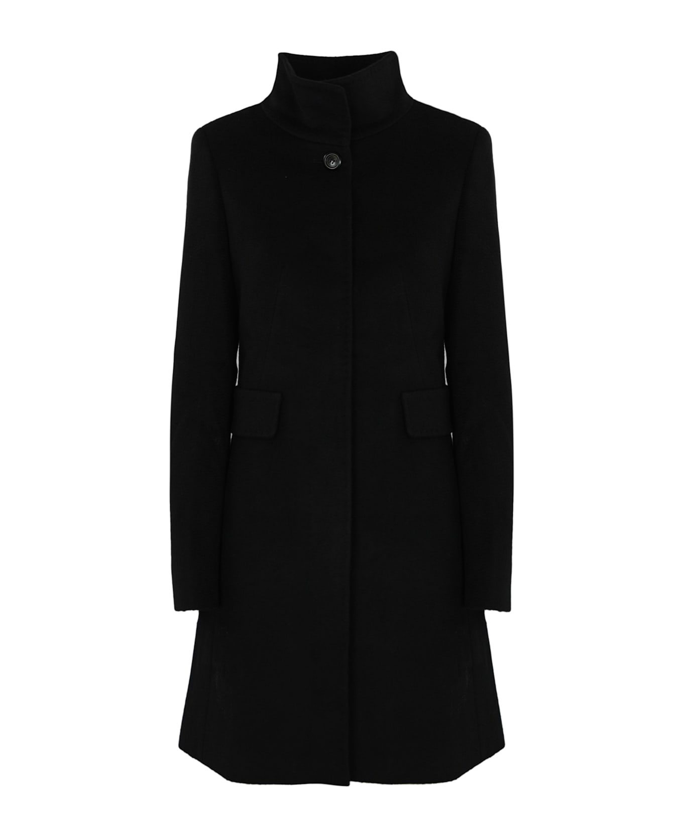 women's wool coat: pure wool long sleeves high collar with visible button front closure with buttons and flap front pockets with flap slit on the back lined regular fit composition: 100% virgin wool