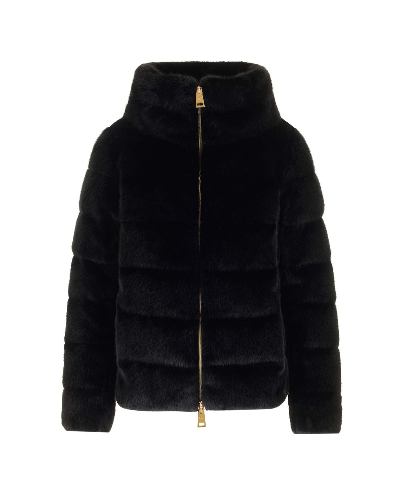 Eco fur jacket from Herno with funnel neck, front zip, low side pockets.
