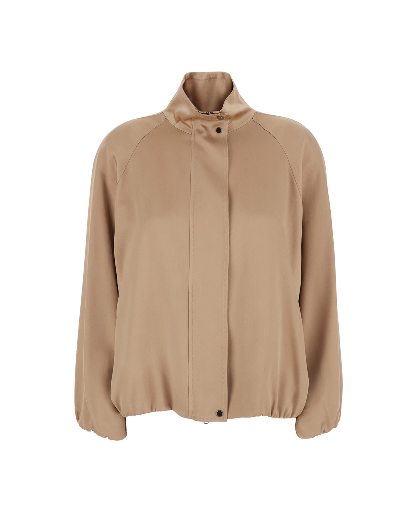 Grace beige jacket with front zip closure. It features a classic collar and long sleeves. The design includes side welt pockets. There are no decorative details on the back. Made of Acetate and Viscose. Regular fit.