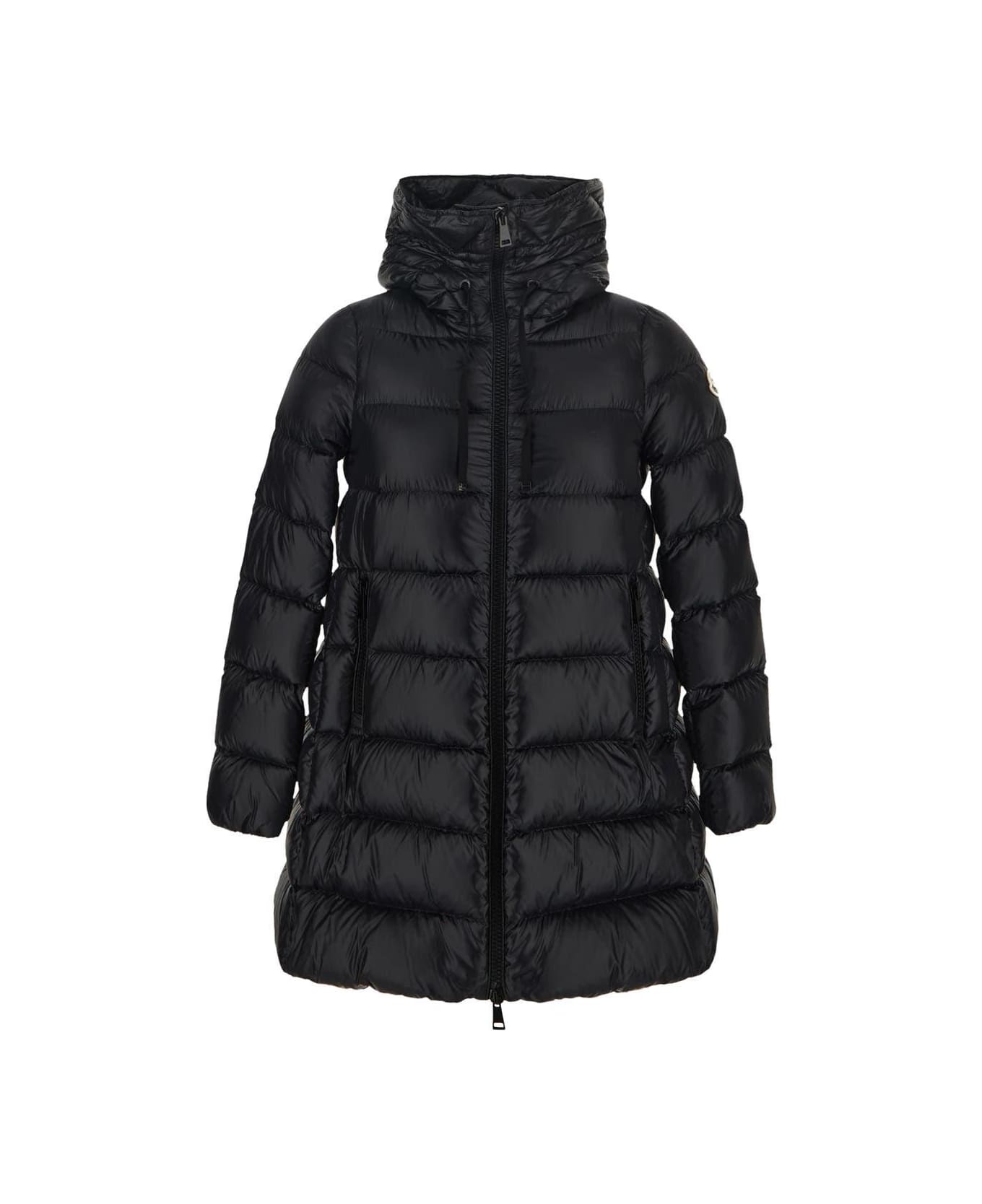 Moncler down jacket in black nylon with quilted texture. The item is featured by a hood, front closure with zipper and two front pockets with zipper.