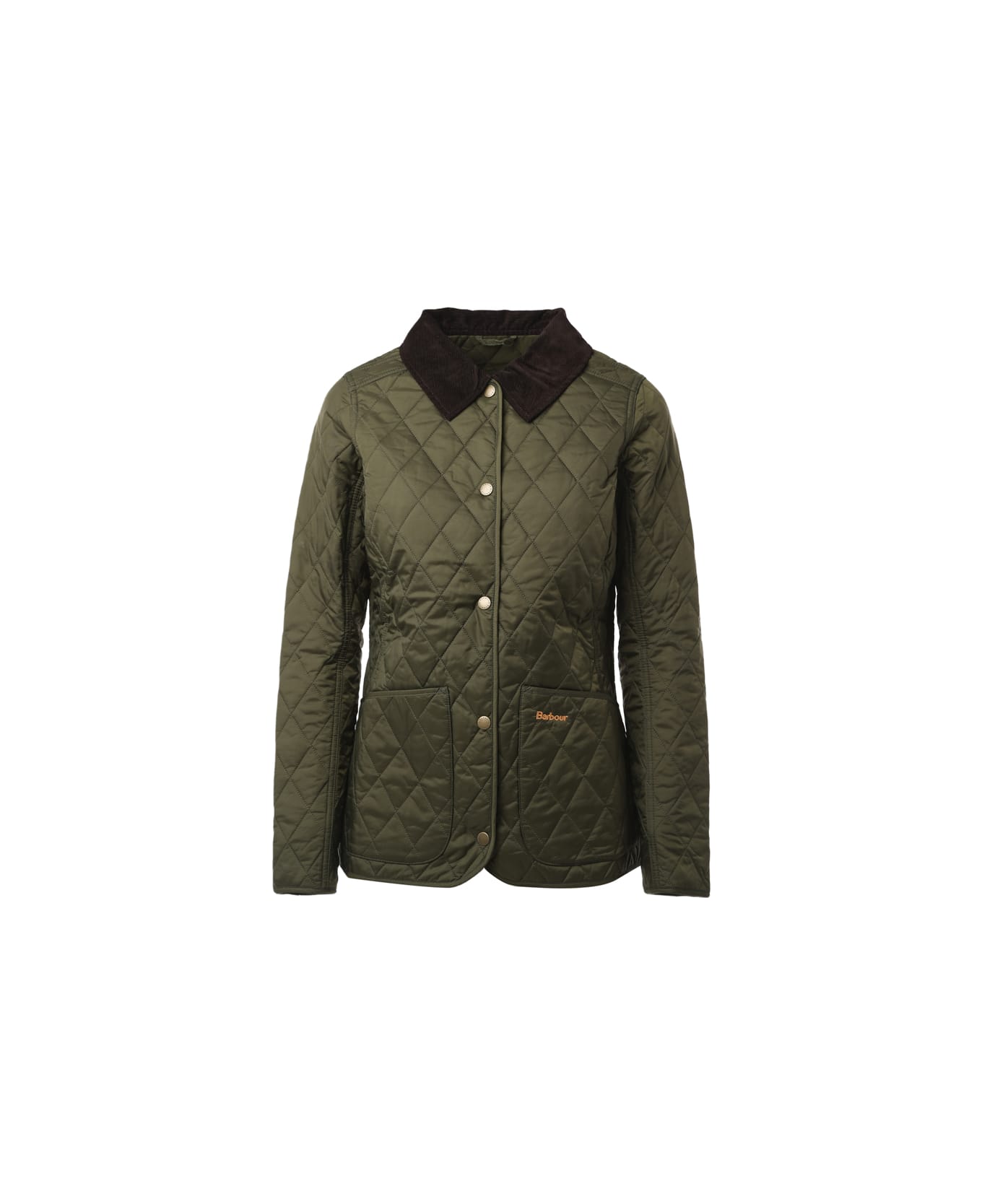 -Elegant quilted jacket with shaped seams to enhance the feminine silhouette -Cord velvet collar -External diamond quilt -Colour: Green