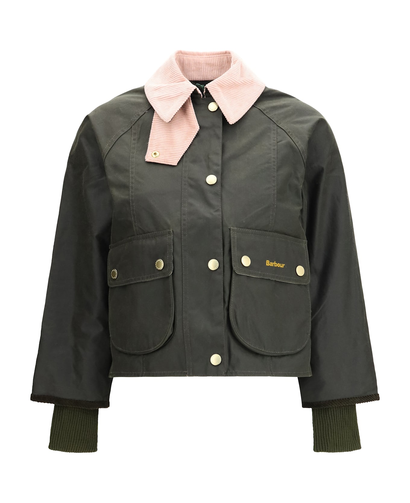 The beadnell waxed jacket by barbour is reimagined with a modern take on the cropped fit, designed by barbour to create a new, contemporary outerwear piece. it retains the iconic elements of the original, such as the signature pouch pockets and finely ribbed collar but reinterprets them in an oversized format. featuring large gold logo snaps and maxi elasticated cuffs, it blends tradition and modernity in a bold and versatile design.