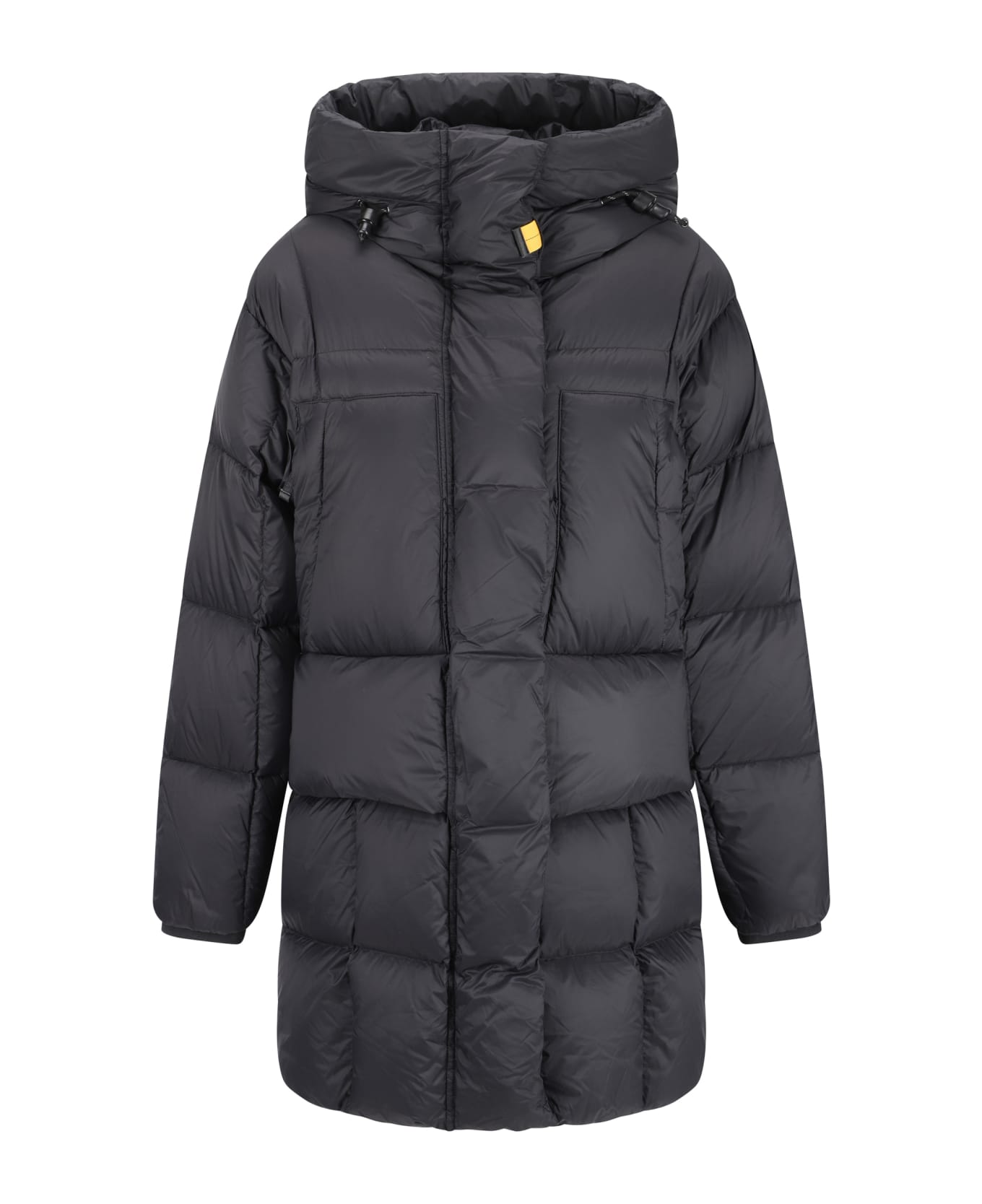 Bold parka down jacket by parajumpers, high neck design with adjustable drawstring hood, two welt pockets on front, two flap pockets on front panel, zipper and button closure with flap on front, ribbed cuffs, all-over quilted and padded design, monochrome pattern, regular fit.