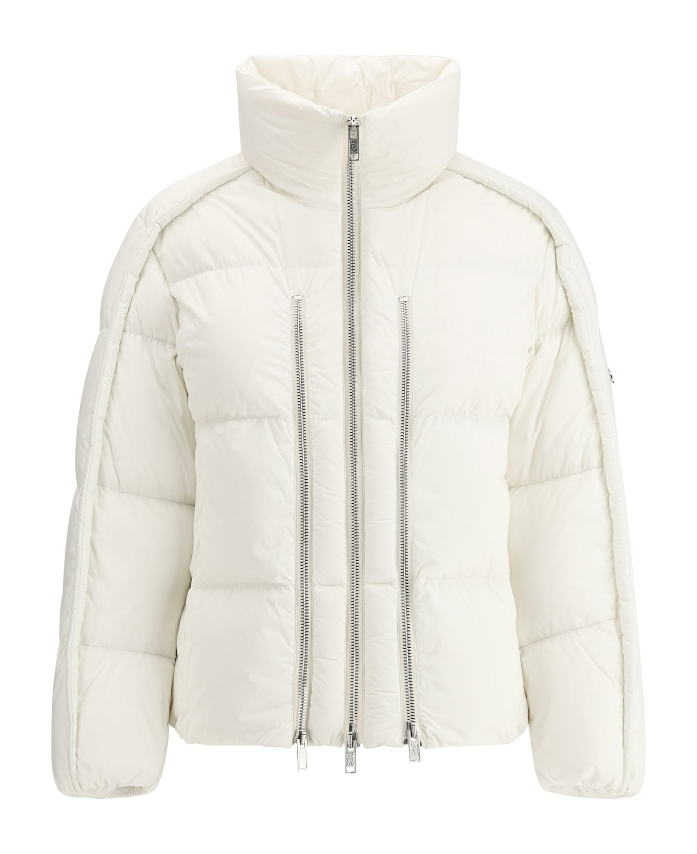 Yael down jacket by moncler x willow smith, high neck model, front zipper closure embellished with two side zippers to create movement, two side welt pockets, elasticized hem, iconic brand logo patch applied on left sleeve, elasticized cuffs, all-over quilted and padded design, regular fit.