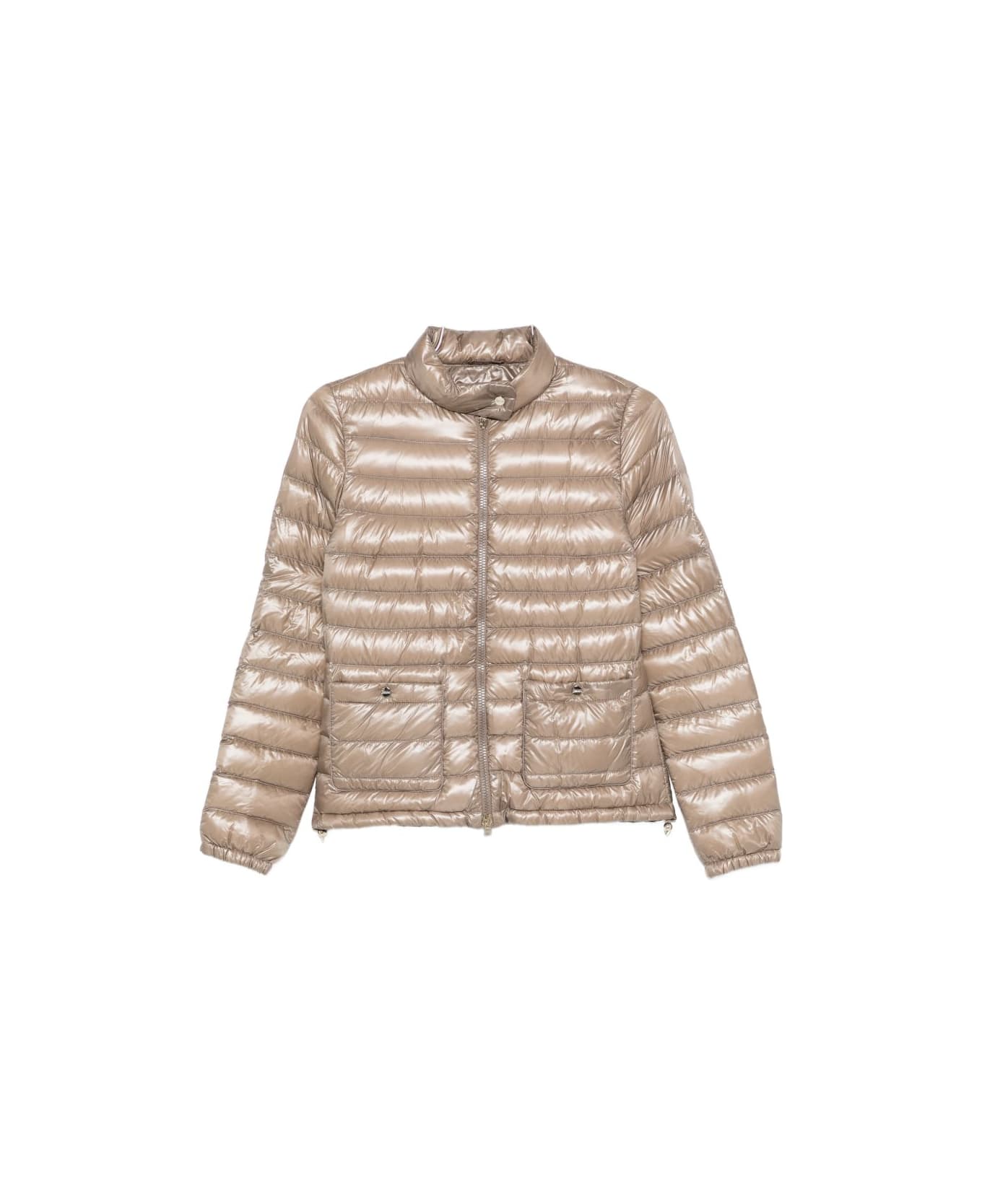 grey/beige front pockets zip fastening round neck long sleeves quilted