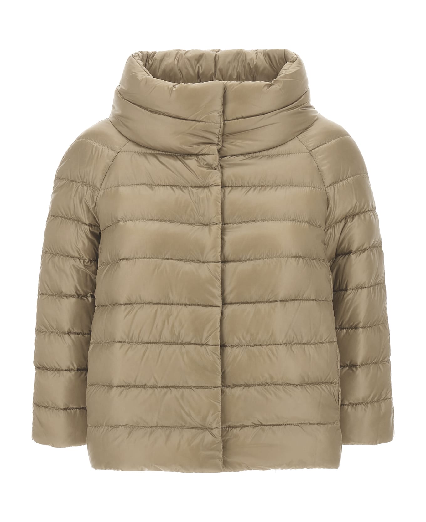 'Sofia' quilted nylon down jacket slightly padded with goose down, crop model, wide high neck, front snap button closure, pockets, 3/4 sleeves. Composition: 100% polyamide