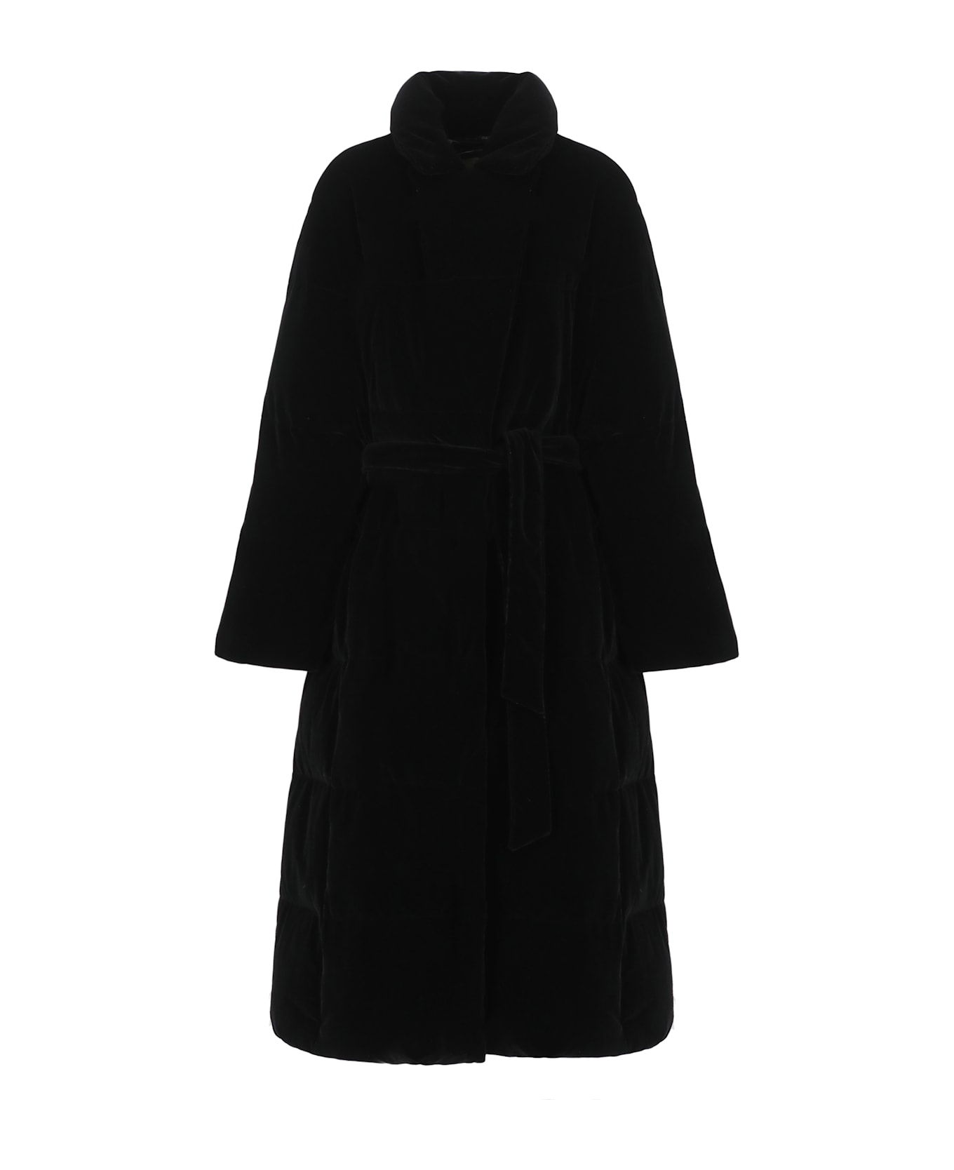 - Herno woman's black padded velvet coat - Collar - Long sleeves - Front buttons fastening - Two front slit pockets - matching belt included Composition: 90% Polyester, 10% Elastane Lining:, 100% Polyamide Filling:, 80% Goose Down, 20% Goose Feathers