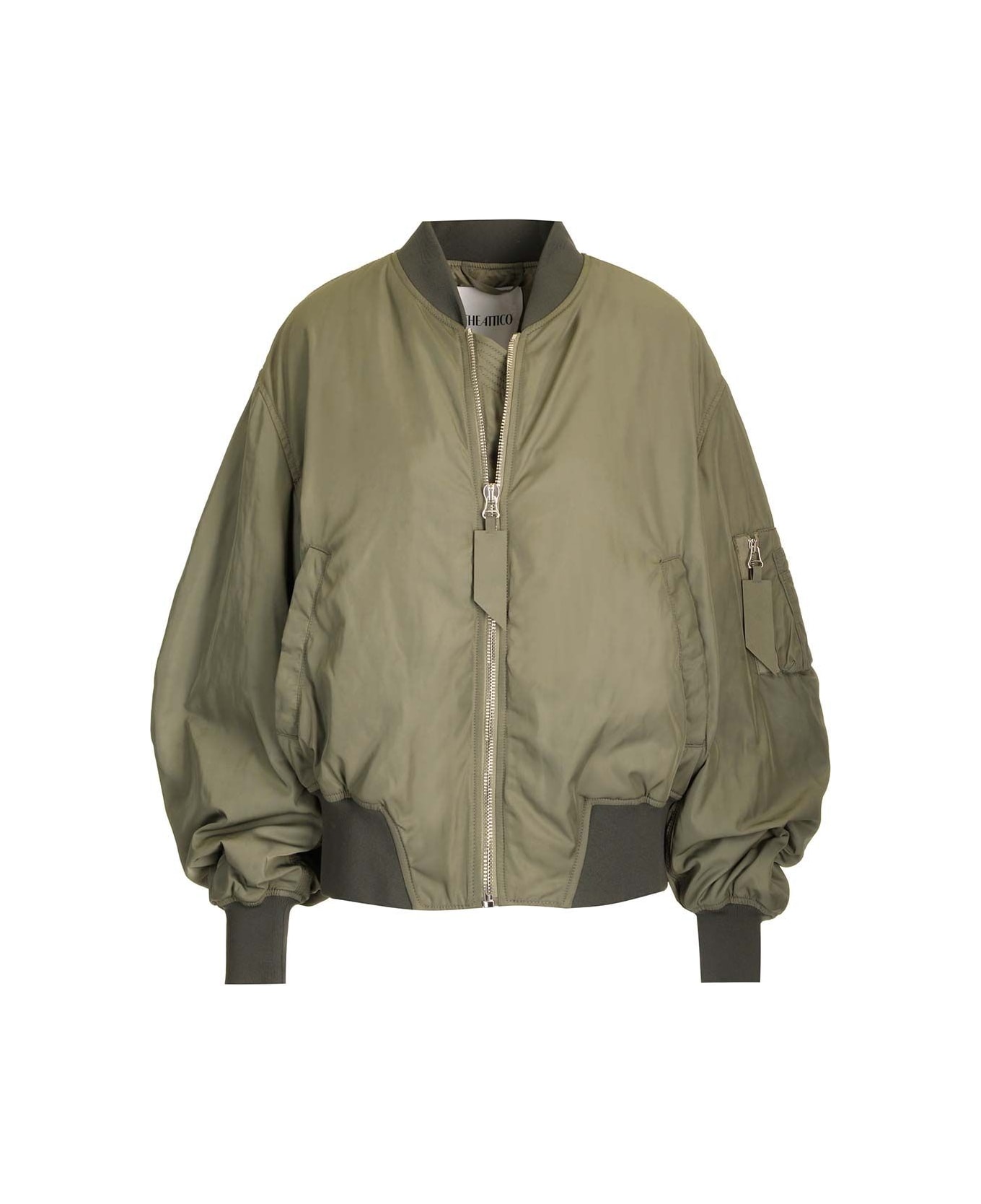 ''Anja'' bomber jacket from The Attico in military green soft nylon twill, with jacquard logo lining and loose fit. Composition: Main Material: 100% PL; Lining: 100% PL; Wadding: 100% PL; Rib: 100% PA