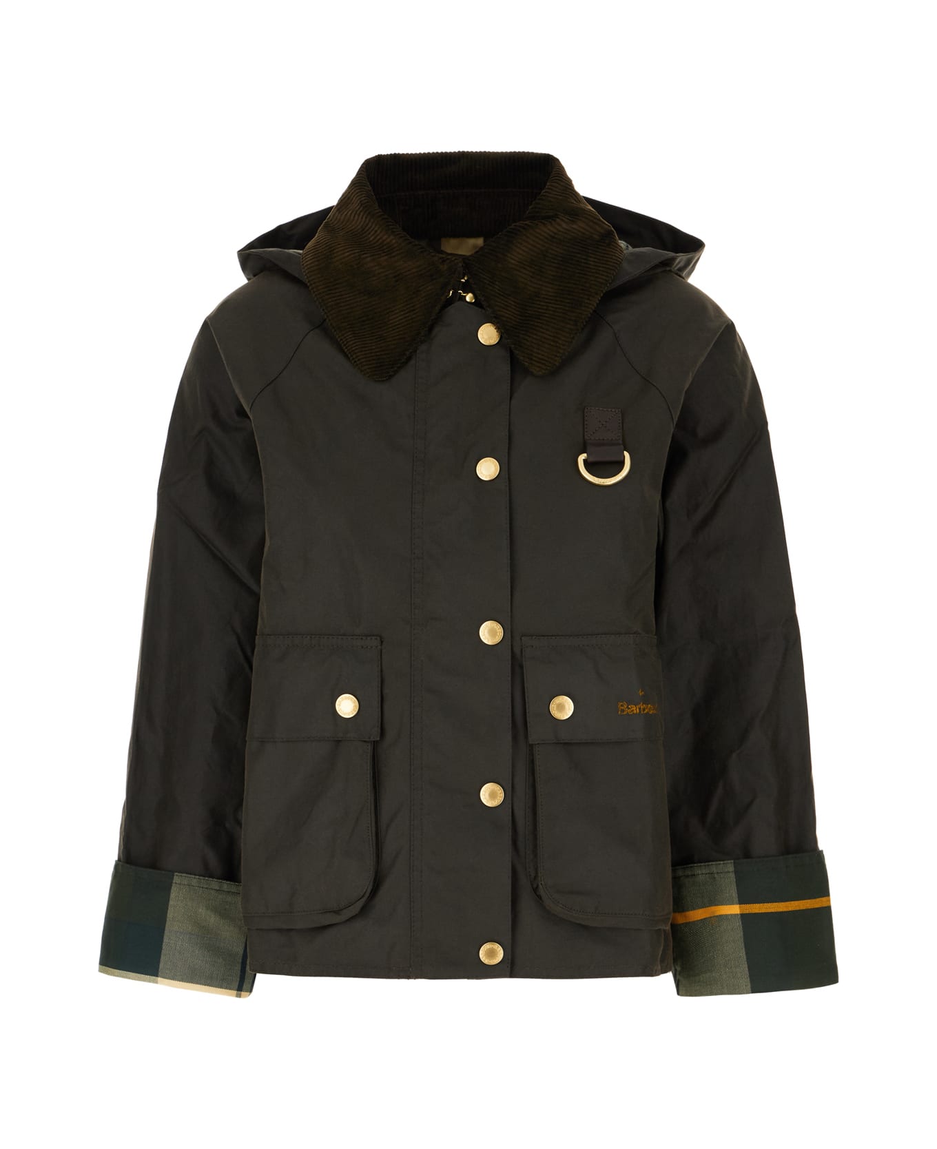 Jacket realized in pure cotton characterized by contrasting embroidered logo at the pocket. -Corduroy pointed collar -Detachable hood -Raglan sleeves -Foldable cuffs -Concealed zip and snap buttons closure -Two flap pockets and two slit pockets at the front -Lined interior with a zip pocket