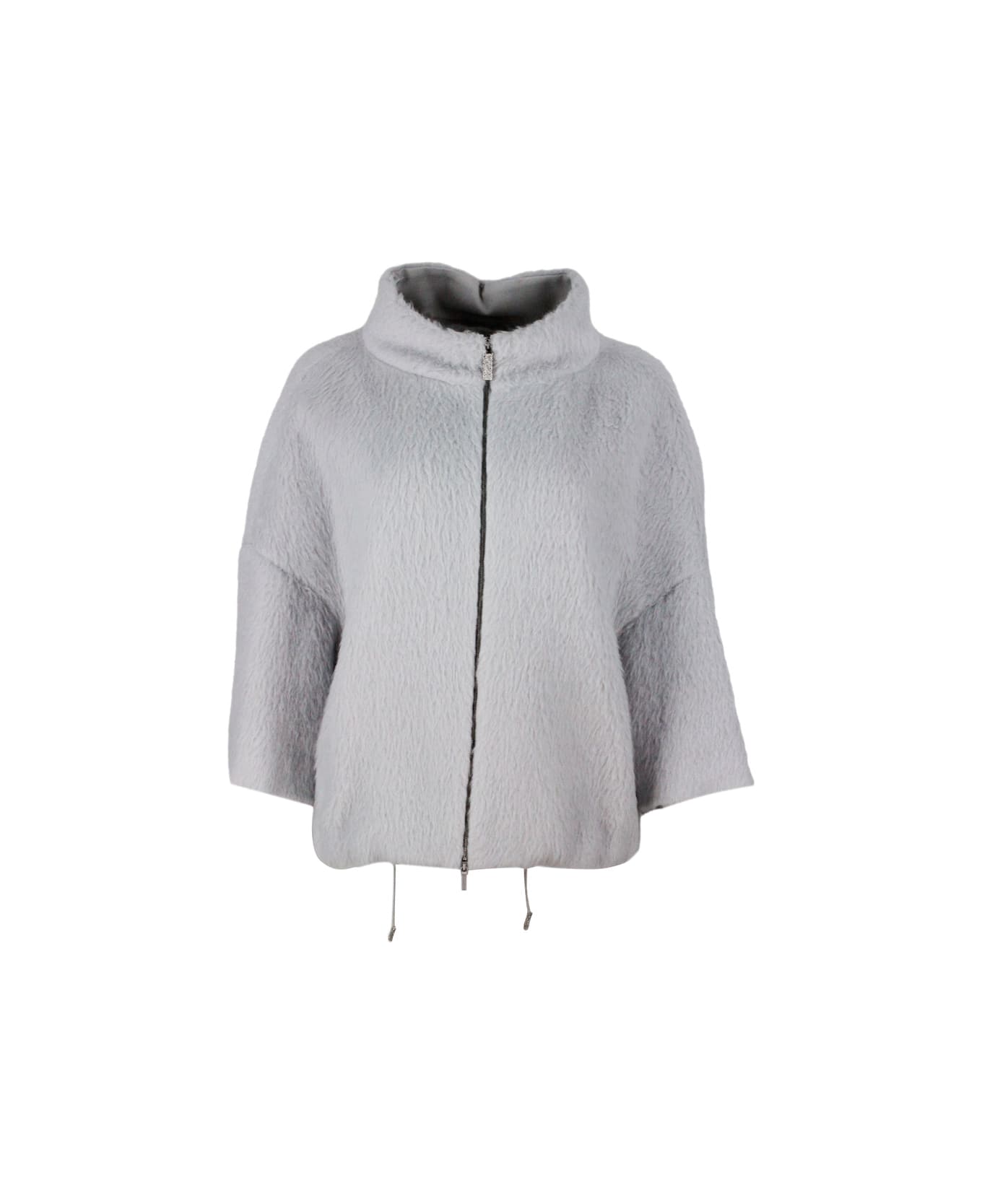 bomber jacket in fur effect alpaca with chimney collar, fluid fit and drawstring at the bottom