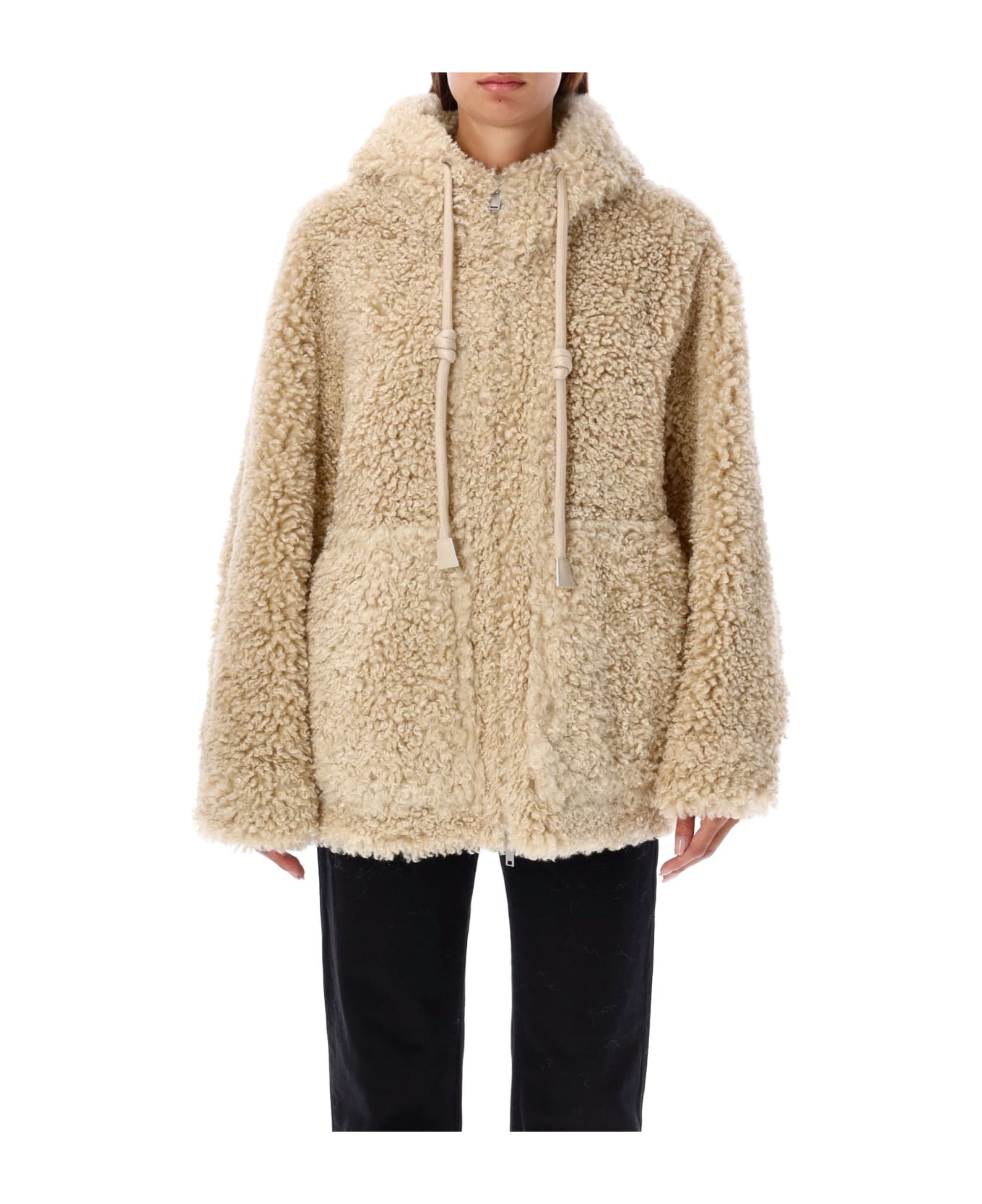 Hooded Eco Fur Jacket By Urbancode. Featuring: Regular Fit Vibrant Shearling Fabric Drawstring Hood Long Sleeves Front Zip Closure Model Is 1,72m And Wears Size S.