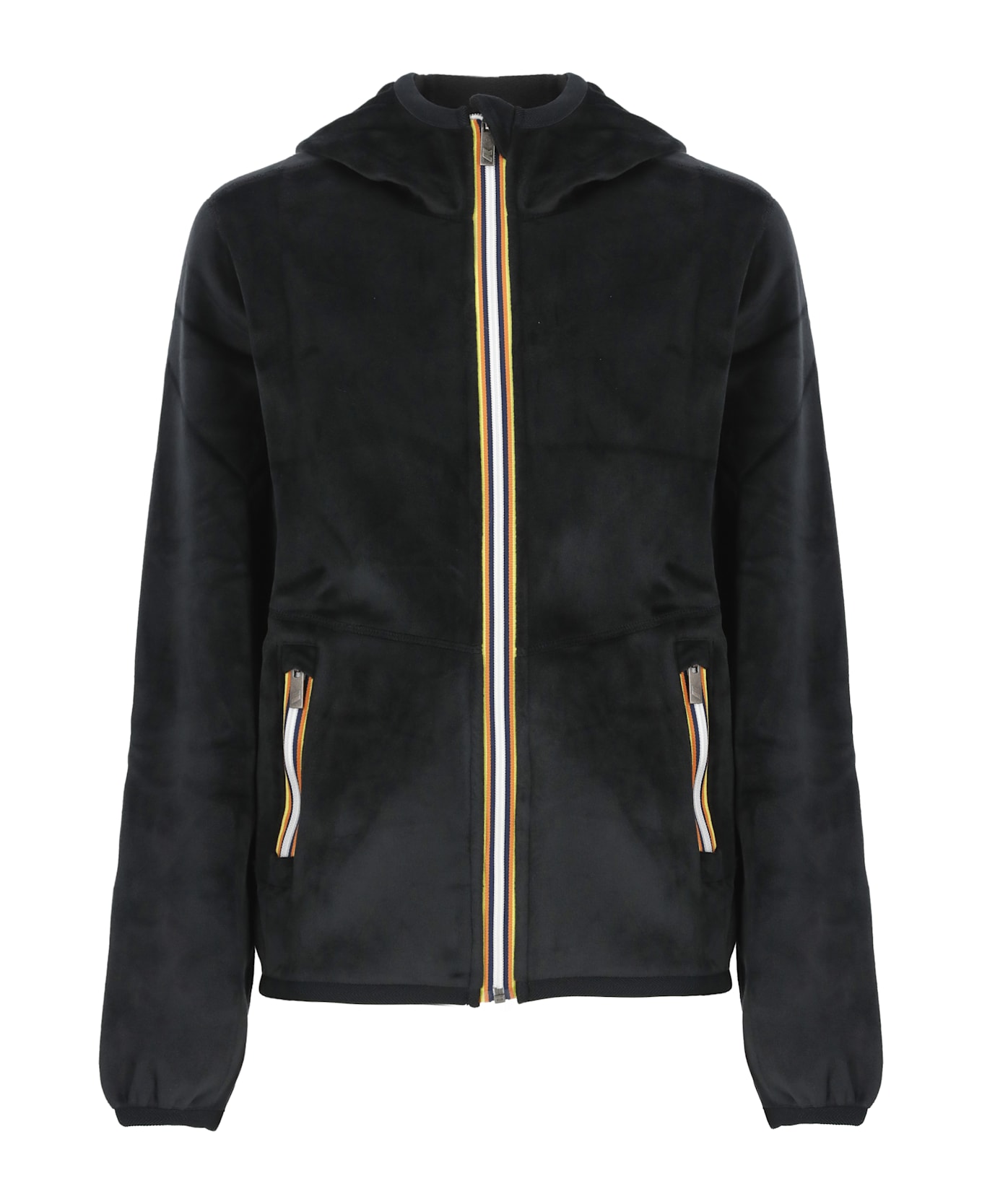 - Black K-Way velvet jacket for woman - Hood - Long sleeves -Two front zip pockets - Front zip fastening