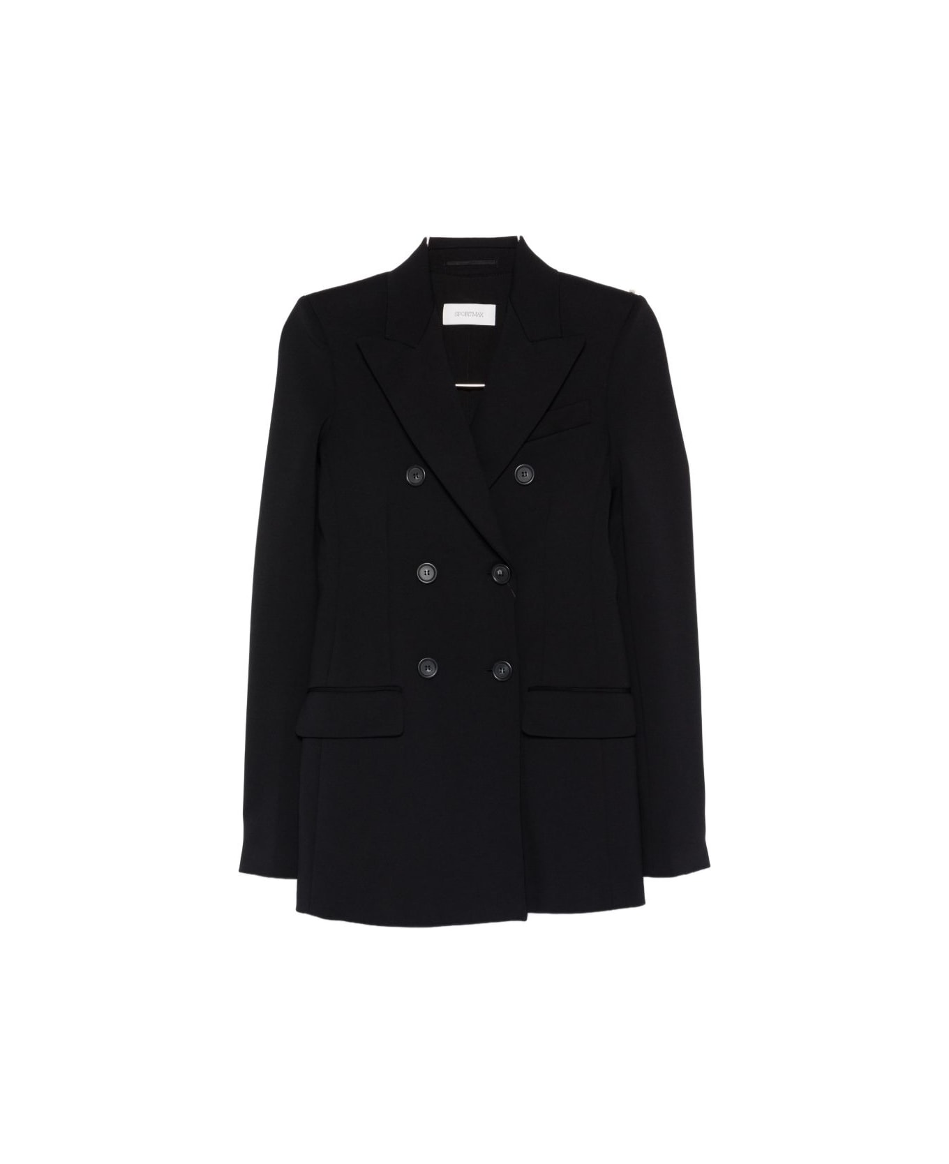 black double-breasted button fastening flap pockets notched lapels