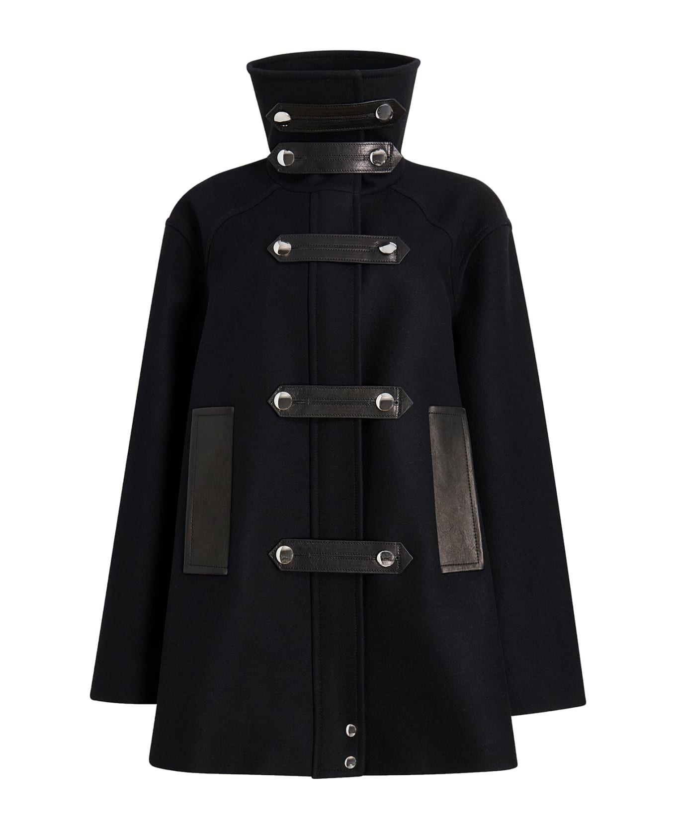 -raised collar -side pockets and chrome buttons -button and zip closure on the front -finished fit