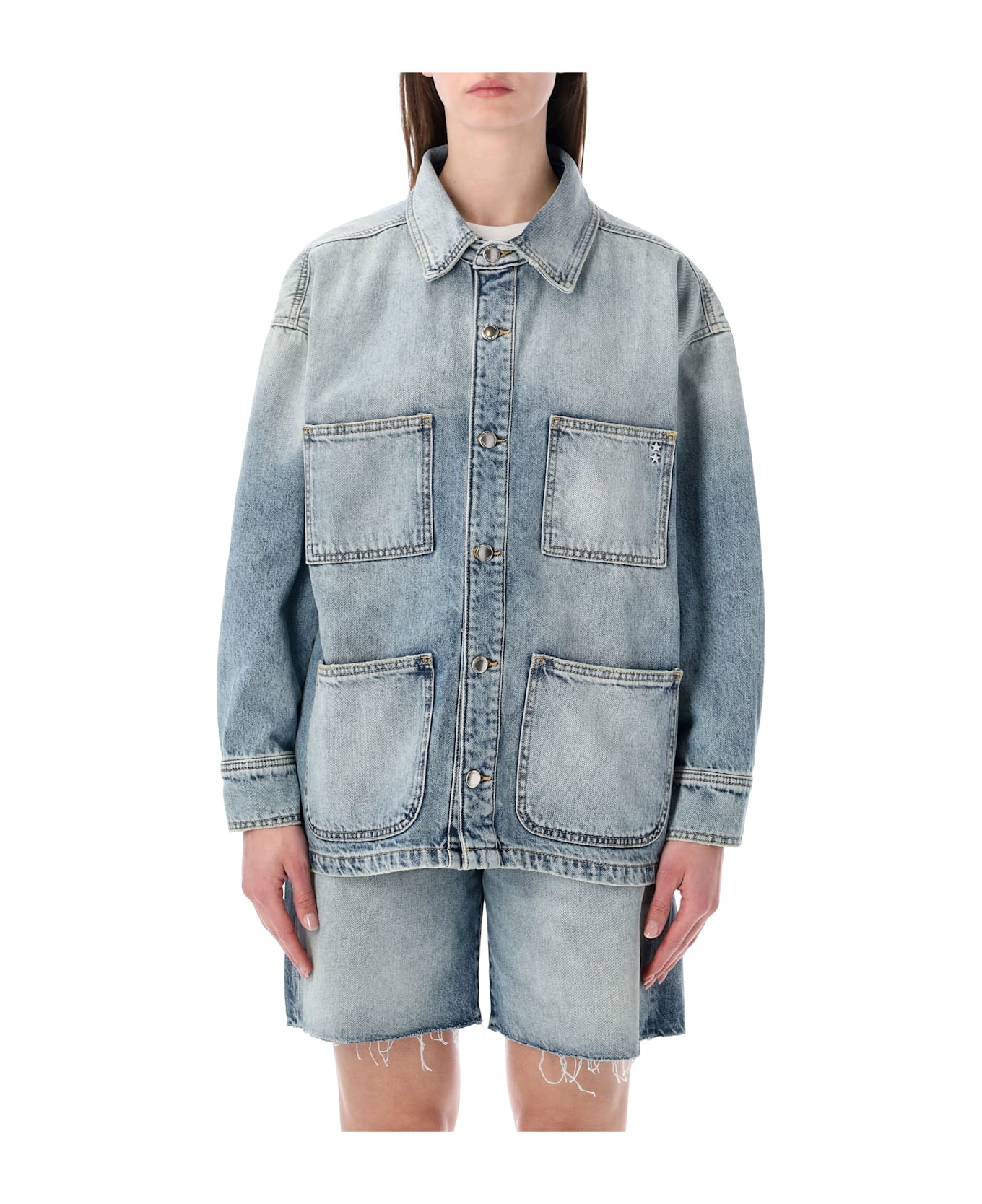 The Icon Denim Nika Jacket Combines A Relaxed, Oversized Fit With Classic Utility Details. Crafted From Soft Light-wash Denim, It Features A Button-front Closure, Multiple Front Patch Pockets, And A Structured Collar. Subtle Fading Adds A Lived-in Effect, Making This Jacket Perfect For Layering Over Casual Outfits Or Summer Denim Sets. Oversized Fit With Dropped Shoulders Button-front Closure With Structured Collar Four Front Patch Pockets Light-wash Denim With Subtle Fading Alessandra Is 1,75 M And Wears Size S