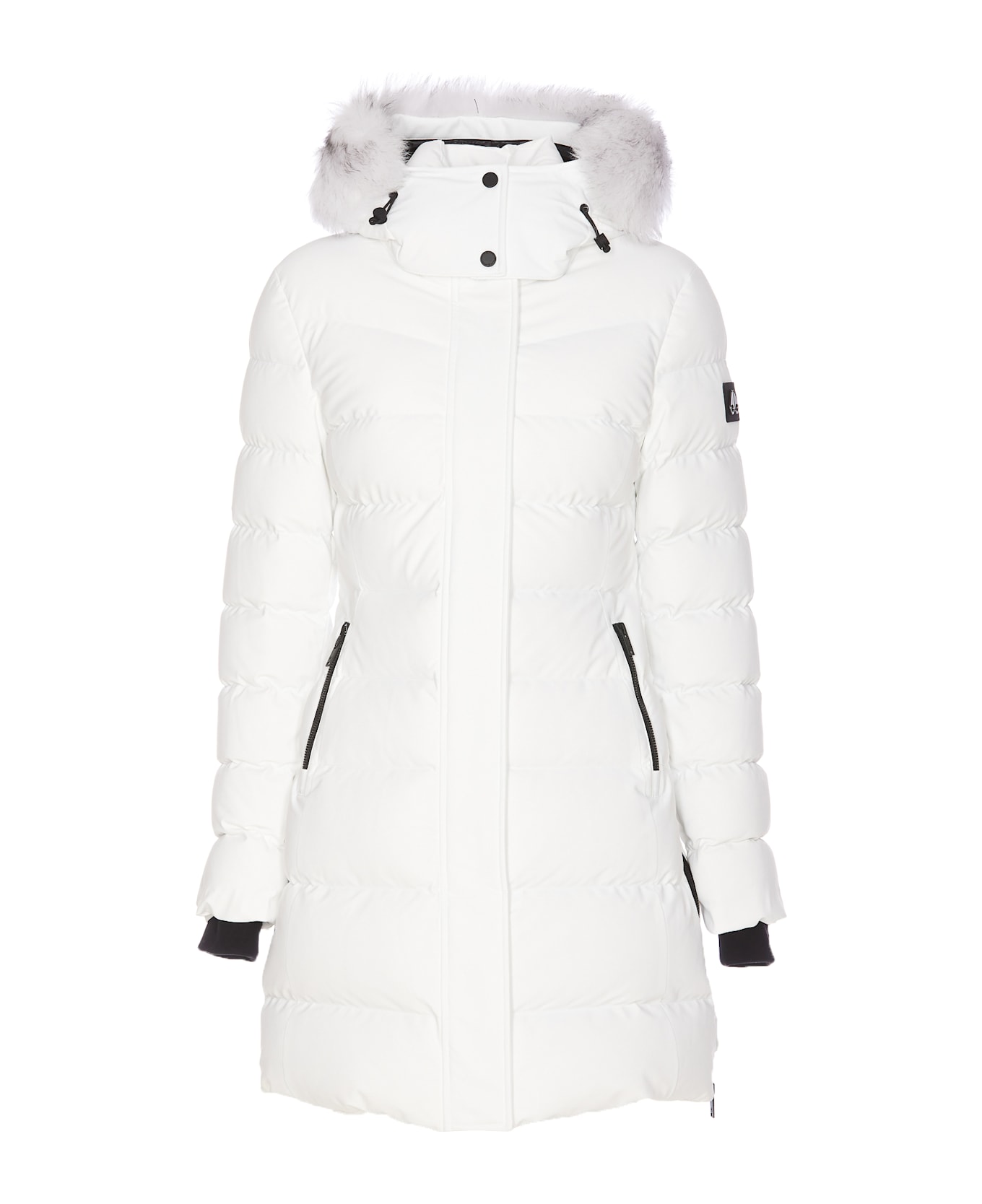 Moose Knuckles white Watershed parka with frontal zip and buttons closure, padded, removable hood with detachable faux fur detail, lateral patch logo, elasticized cuffs, lateral zip pockets, split with zip detail