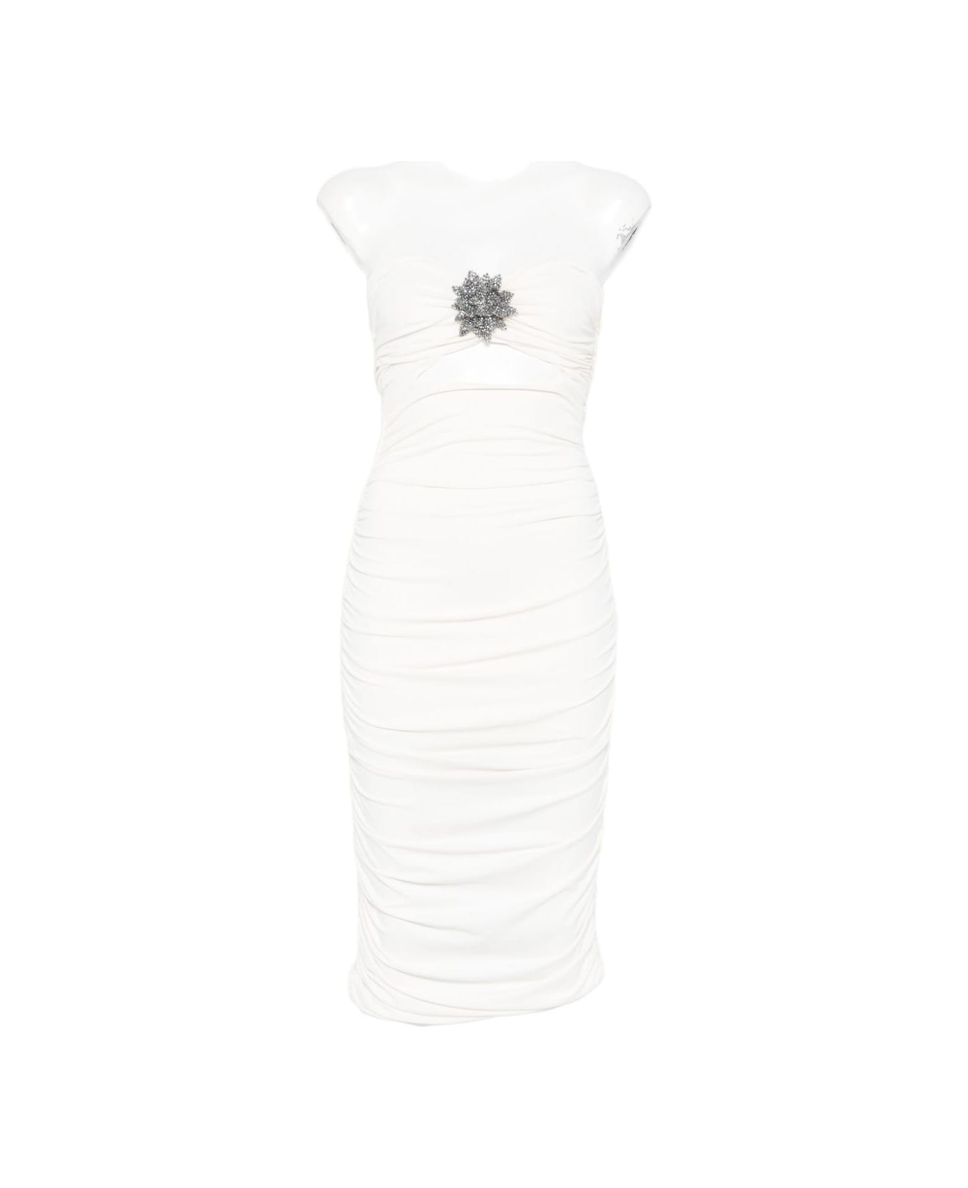 Amen Dress with cut-out detail in white Strapless neckline, center cut-out, beaded embellishment, and a fitted silhouette. - 77% Acetate, 19% Polyamide, 4% Elastane. - The model is 1. 79 m tall and wears a size 40 (Italy). - This item fits true to size. We suggest ordering your usual size.