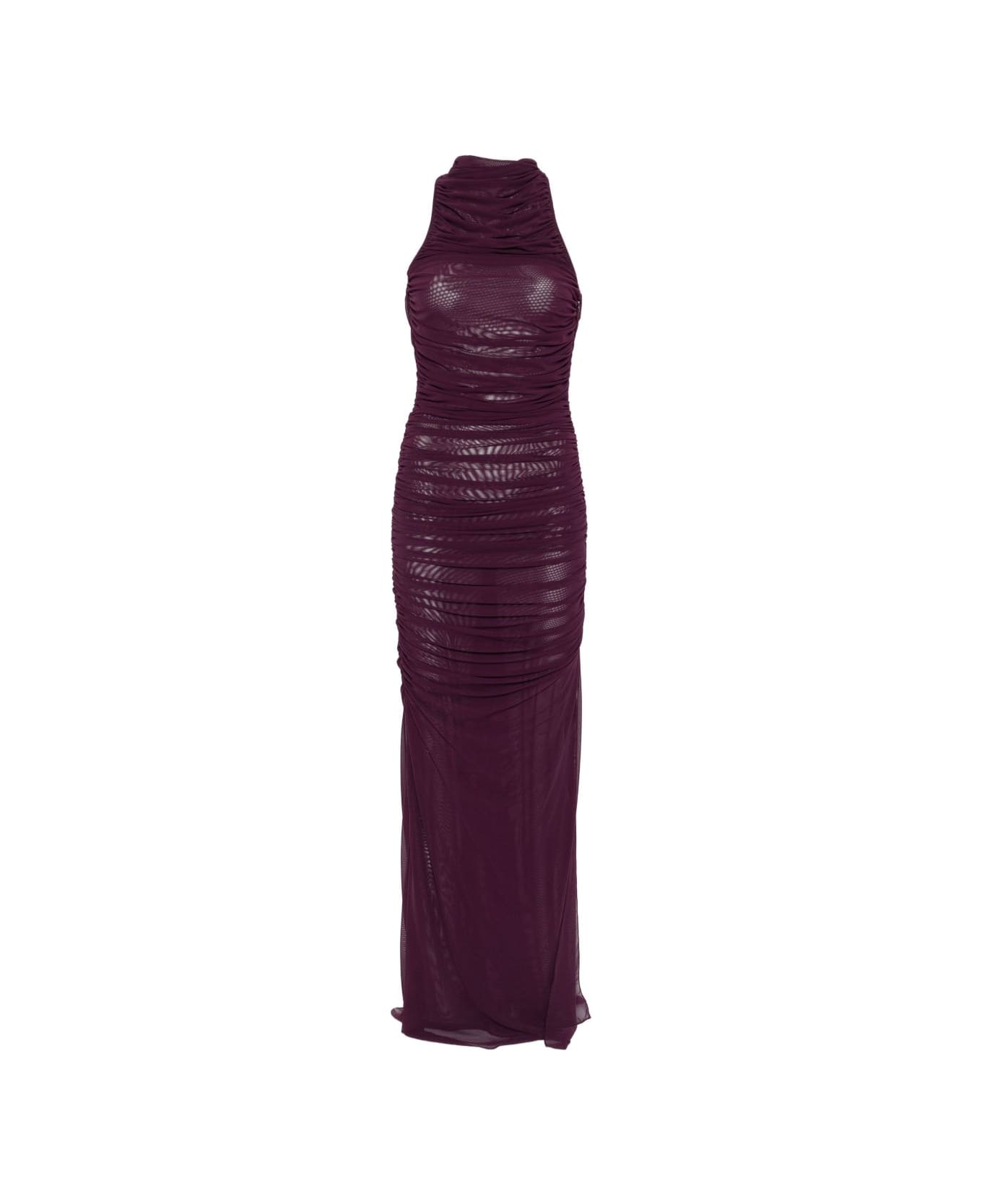 Amen Sleeveless purple mesh draped dress with halter neck