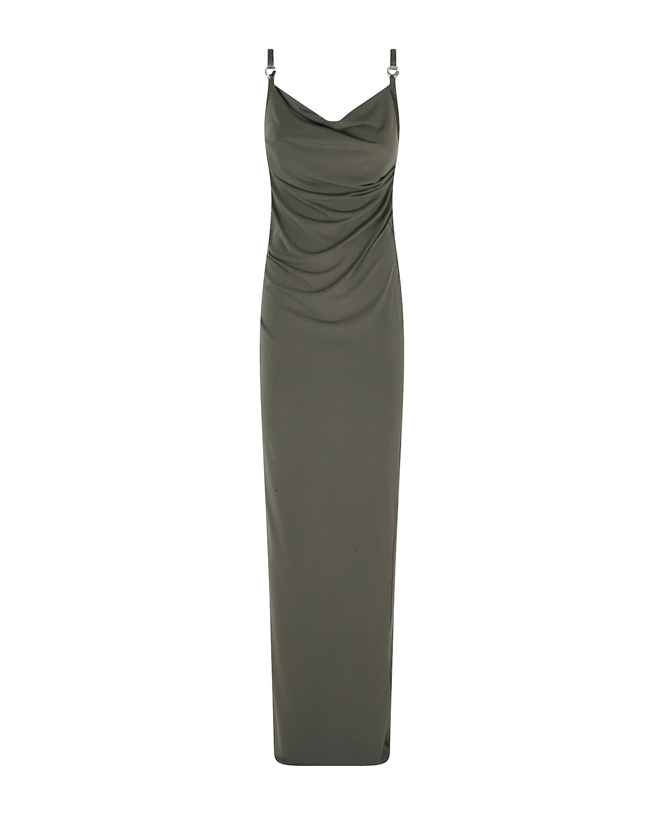 Category: Dress Item: Long logo dress Brand: Coperni Color: Green Neckline: A cowl and open back Details: Metal logo on one strap SIZE AND FIT Fit: Slim Fit: Straight
