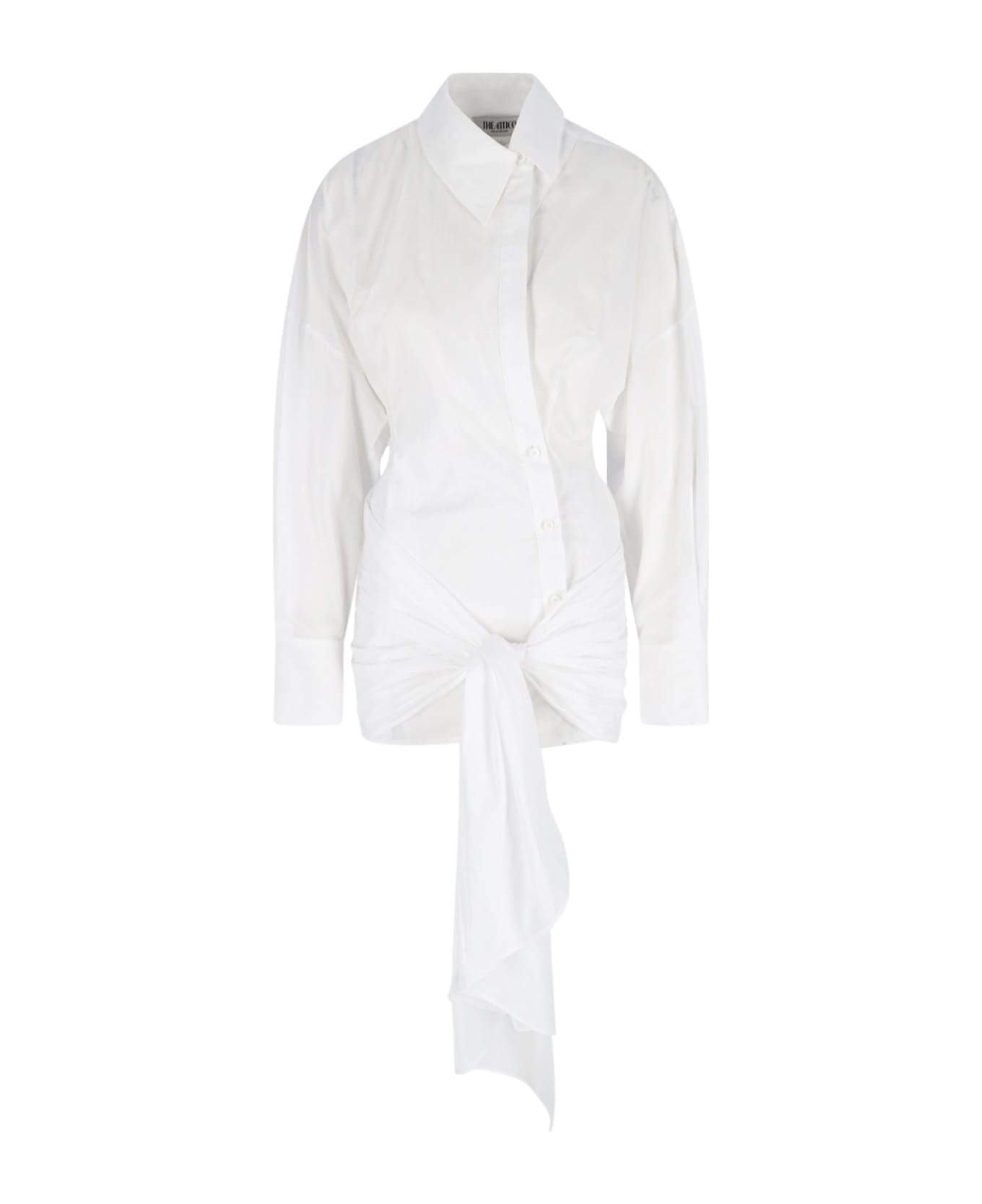 The attico white cotton mini shirt dress with classic collar, front button closure, front ruffled details on the front, straight hem. Composition: 97% Cotton, 3% Elastane