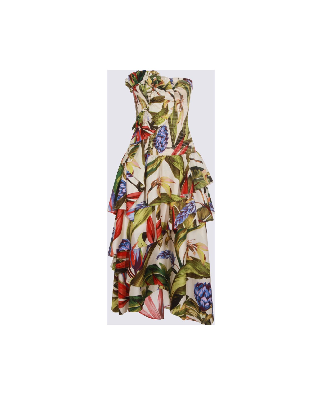 Multicolor viscose dress from Farm Rio featuring all-over floral pattern, drapes, sleeveless, asymmetrical hem and midi lenght.
