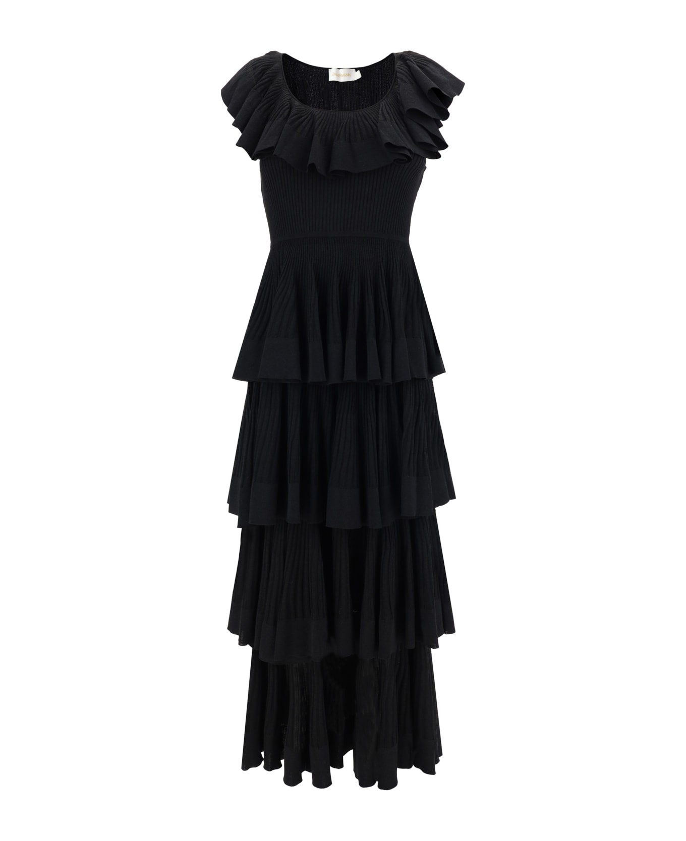 Nature tiered ruffle cotton dress by zimmermann, featuring a sleeveless design, a ribbed design, a front neckline, a long ruffle skirt, a monochrome pattern, and a regular fit.