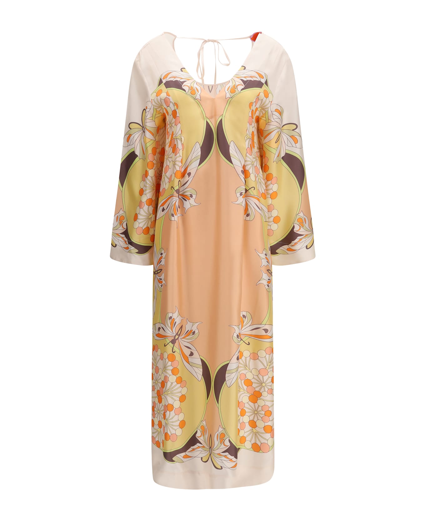 The twin flame dress by la doublej expands the brand s dress collection with a fluid and versatile design defined by a distinctive character. crafted from luxurious silk twill, the dress features an oversized silhouette enhanced by a placed print that highlights the garment s refined aesthetic. designed to offer two styling options, one side reveals an elegant v-neckline, while the other features a playful keyhole detail fastened with a ribbon. this dual design allows the piece to be easily transformed, making it ideal for effortless transitions from daytime elegance to evening sophistication.