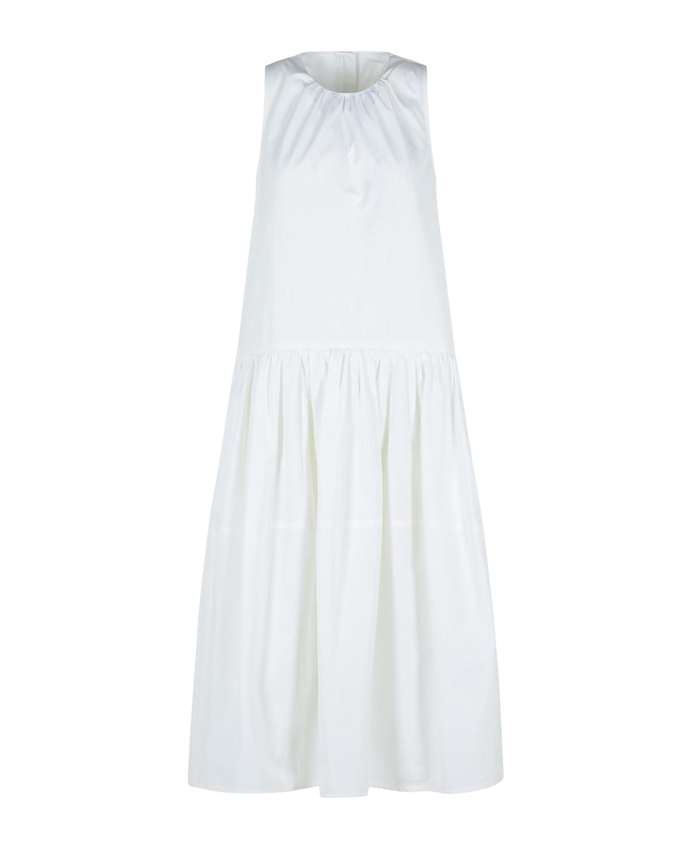 Tone-on-tone stitching, draping on the skirt, concealed zipper closure with flap at the back Composition: 100% cotton