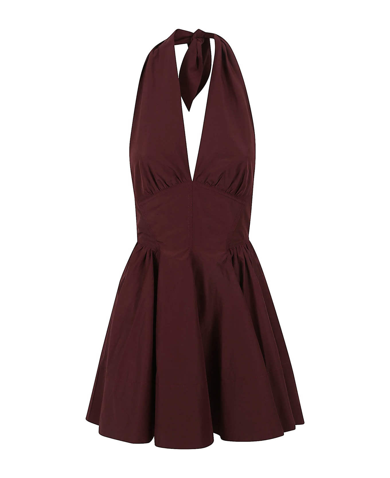 Winona dress in cotton taffeta by THE ANDAMANE. Mini design, bodice that sculpts the waist, halter neckline; skirt with small pleats that give movement.