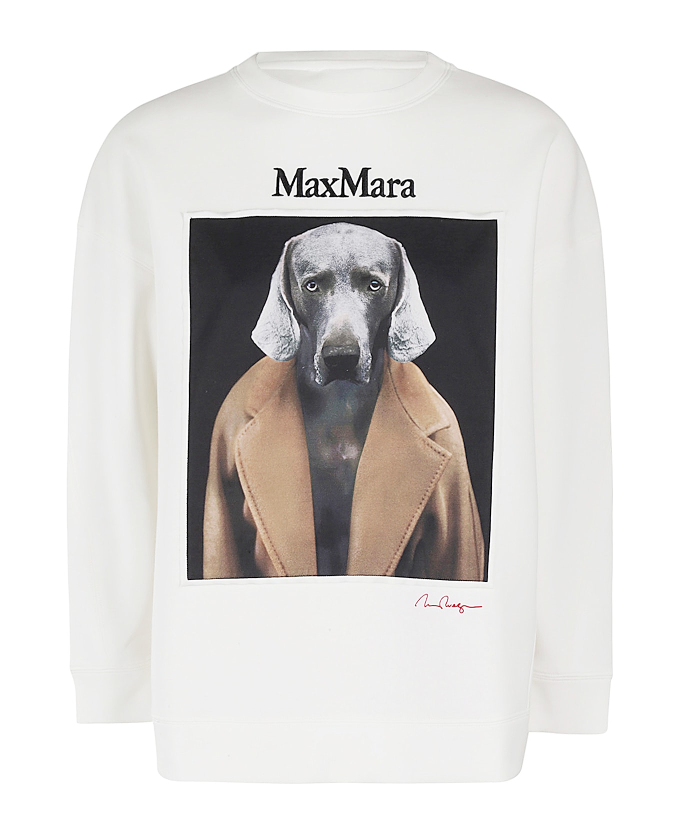 Bacchus Sweatshirt - Max Mara - Ivory color - Crew neck - Long sleeve with elasticated cuff - Contrasting logo print on front