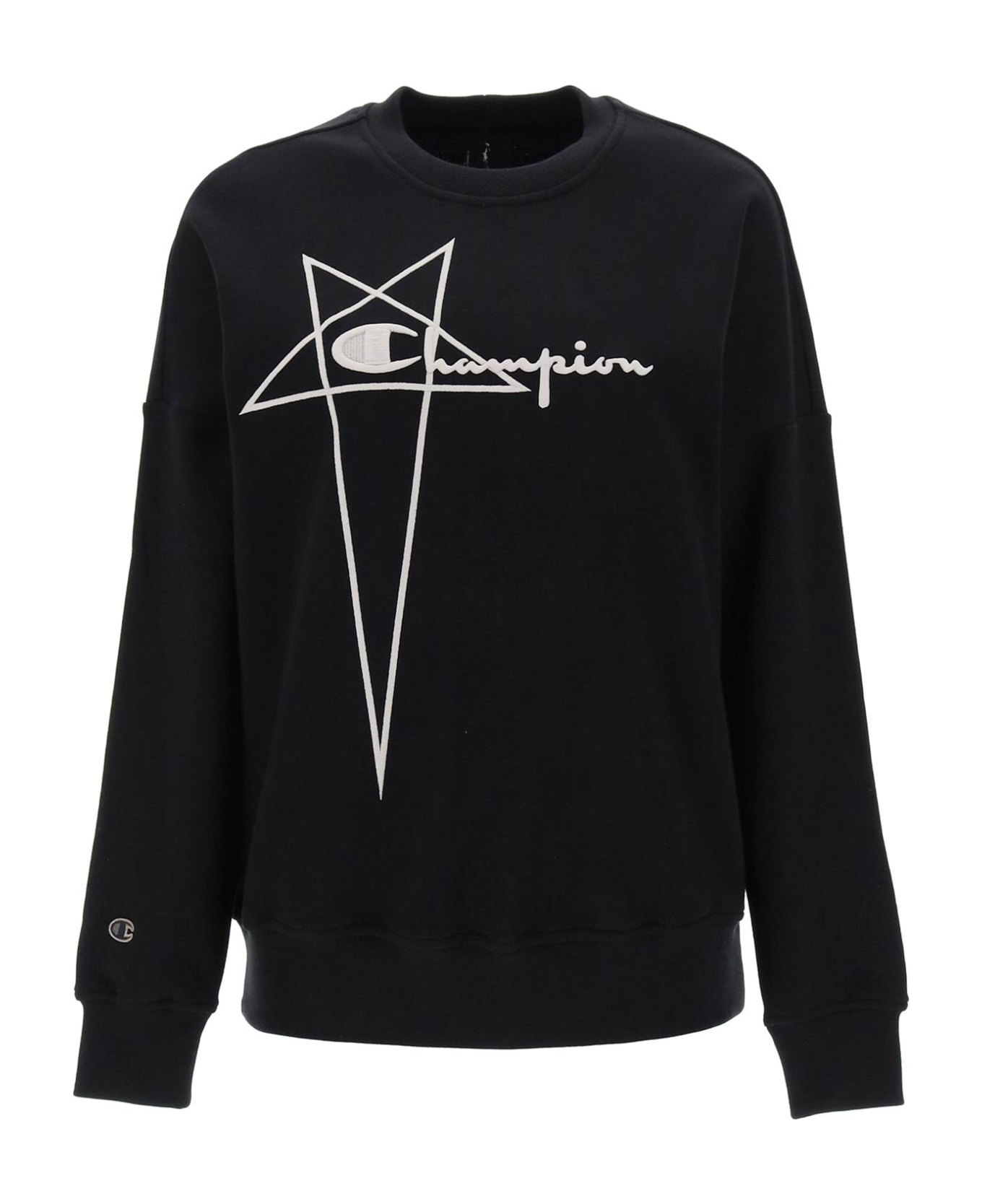 Sweatshirt from the Champion x Rick Owens collection crafted in pure cotton french terry and characterized by contrasting maxi Pentagram logo embroidery on the chest. Ribbed crew-neck, hem and cuffs. Relaxed fit with low-set sleeves. The model is 177 cm tall and wears size XS.