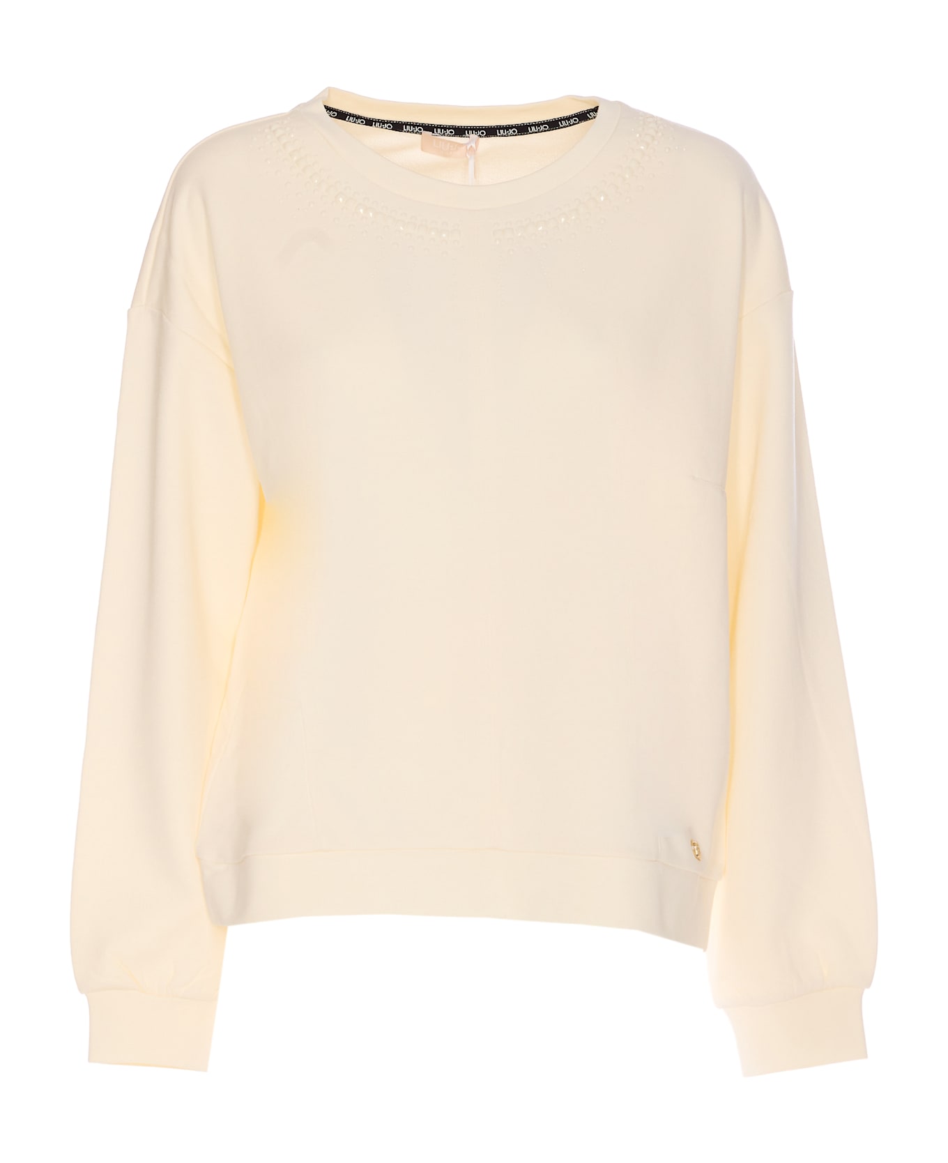 Liu Jo white sweatshirt, crewneck, studs details, long sleeves, mini plaque on the back Composition: 65% Cotton, 35% Polyester
